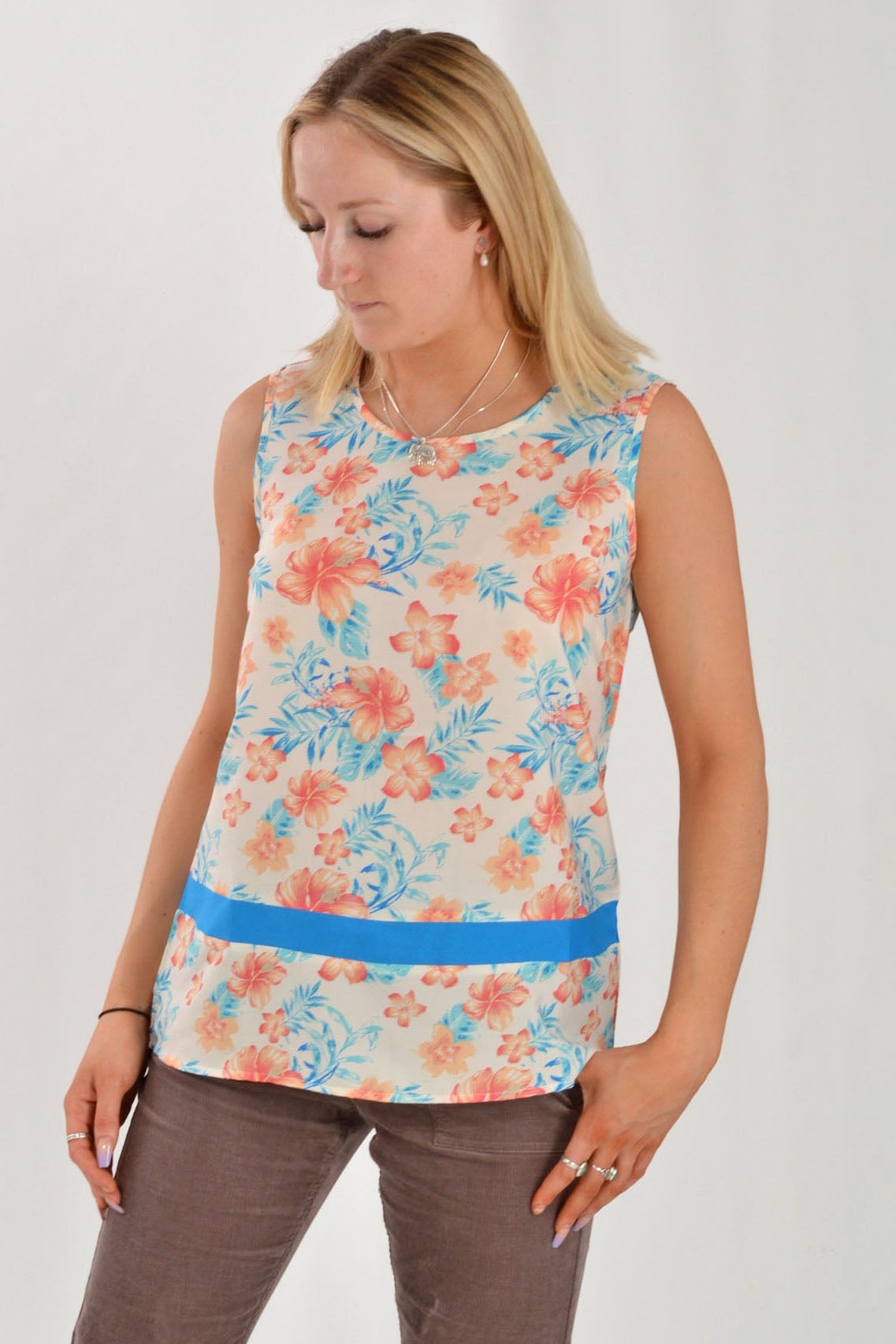 A boxy sleeveless tunic with discreet side splits and curved hemline finished with an elegant rounded neckline. Pair this top with your favourite trousers, and a dash of lipstick for lunch dates or pool parties. Available in two fabulous prints and colours.