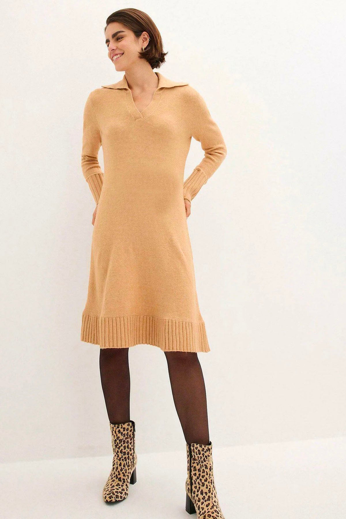 Throw on this effortless collared V-neck jumper dress and you'll love it's warm comfort. Cut in a knee-length and crafted from a sumptuous soft acrylic knit, which washes and dries quickly. Comfort meets chic in one versatile wardrobe essential.