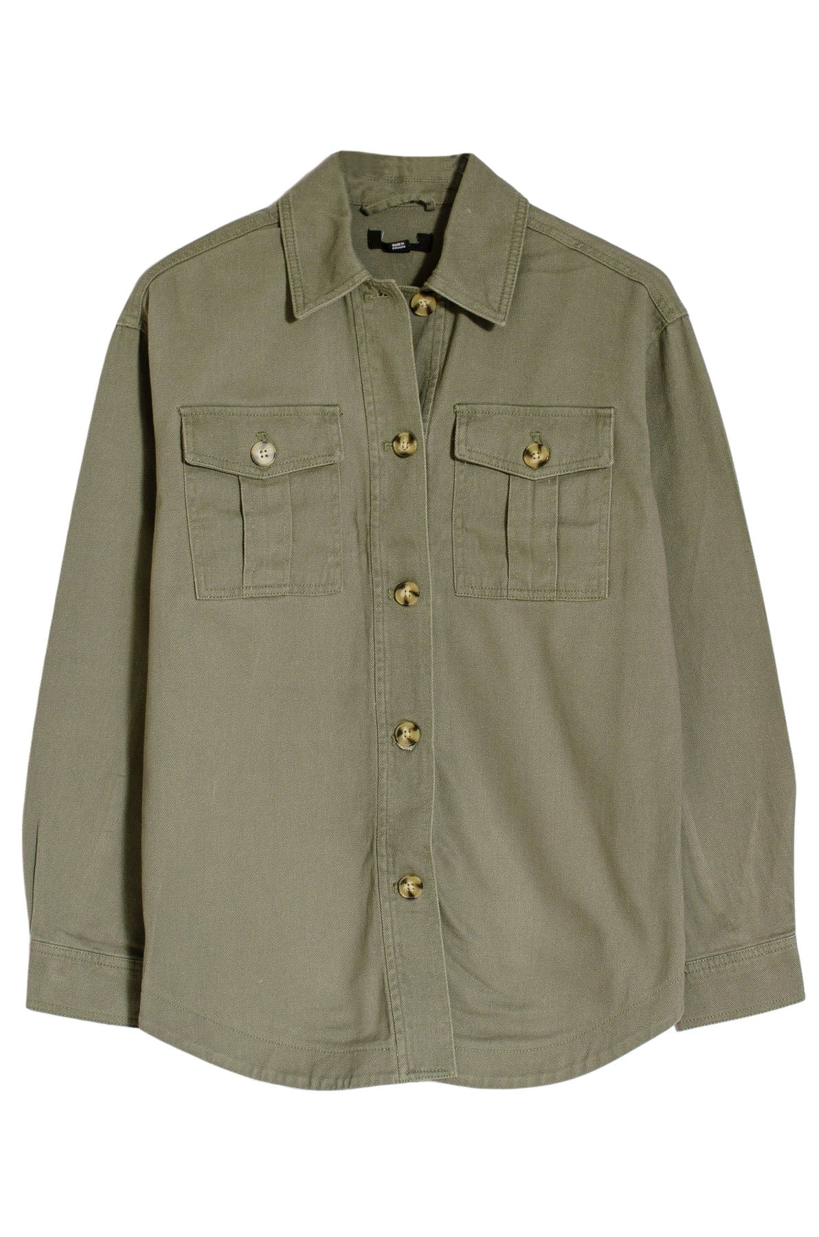 From its practical pockets to its collared neckline, this khaki cotton shacket will give your outerwear an upgrade. The perfect lightweight layer, throw it on with everything from trousers to dresses to beat the chill in style.