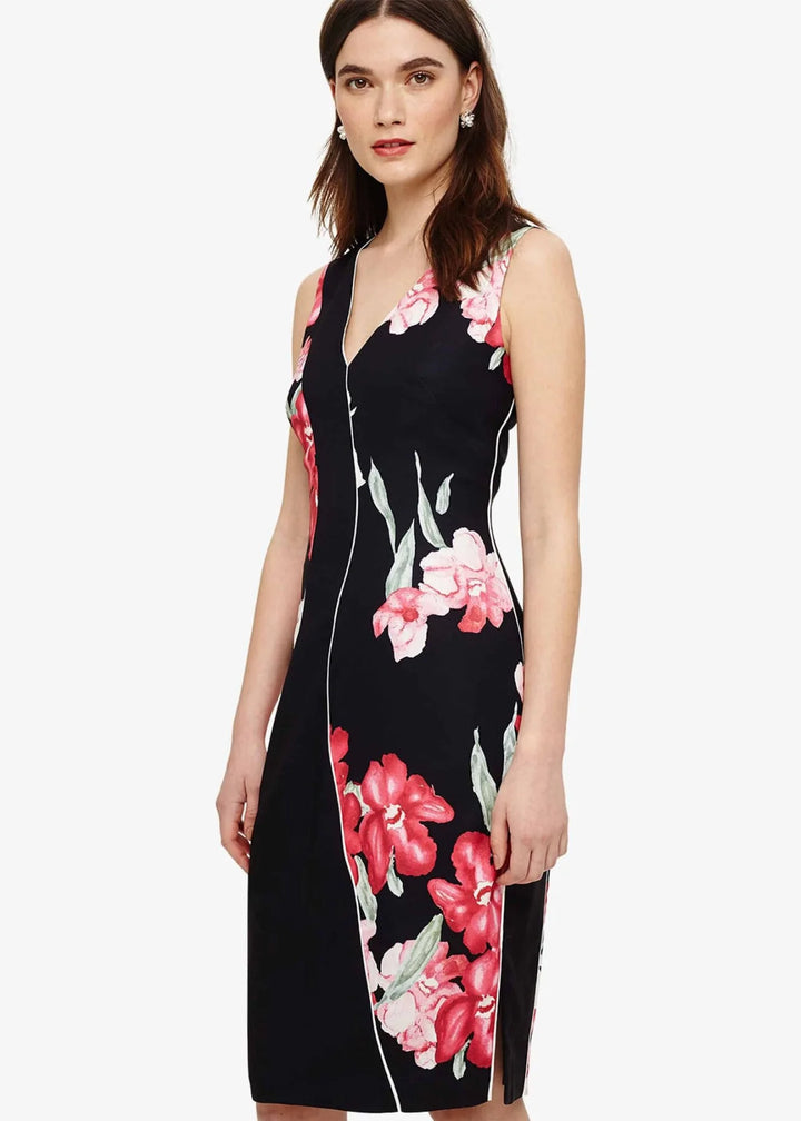 Make a stunning entrance at your next wedding reception in this Maria Floral Dress by Phase Eight. Fully lined and designed using a lightweight material, this dress is crafted with femininity in mind. Featuring a contemporary floral print, this piece has contrast curved piping and flattering panelling to create a dress which is both classic and modern. Pair with a bolero or shawl to exude ladylike sophistication.