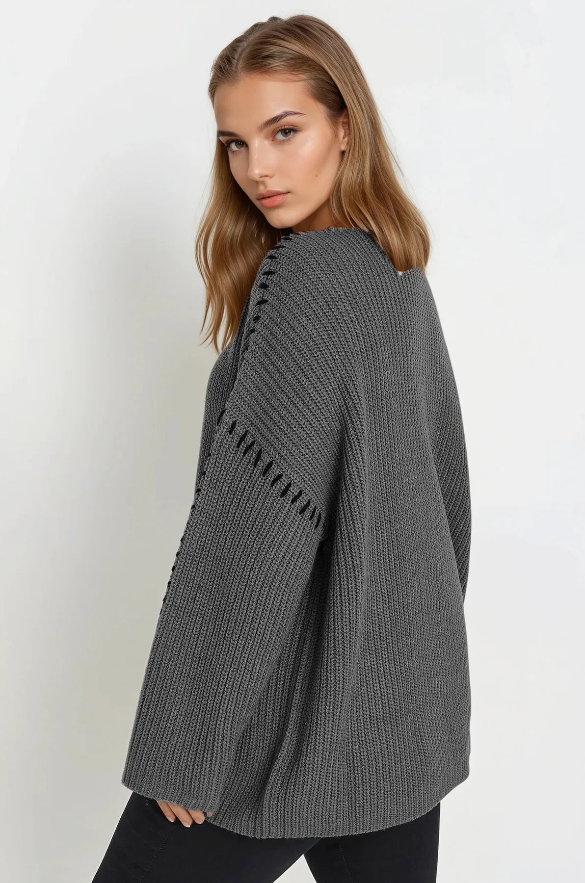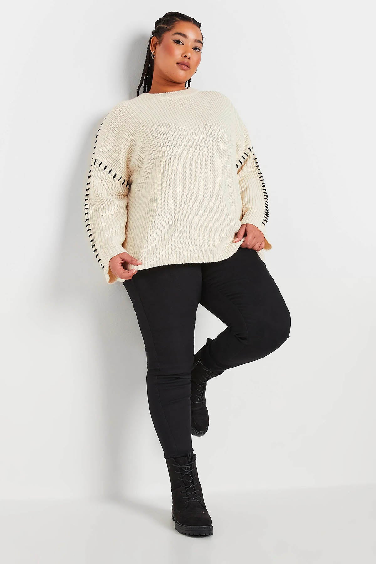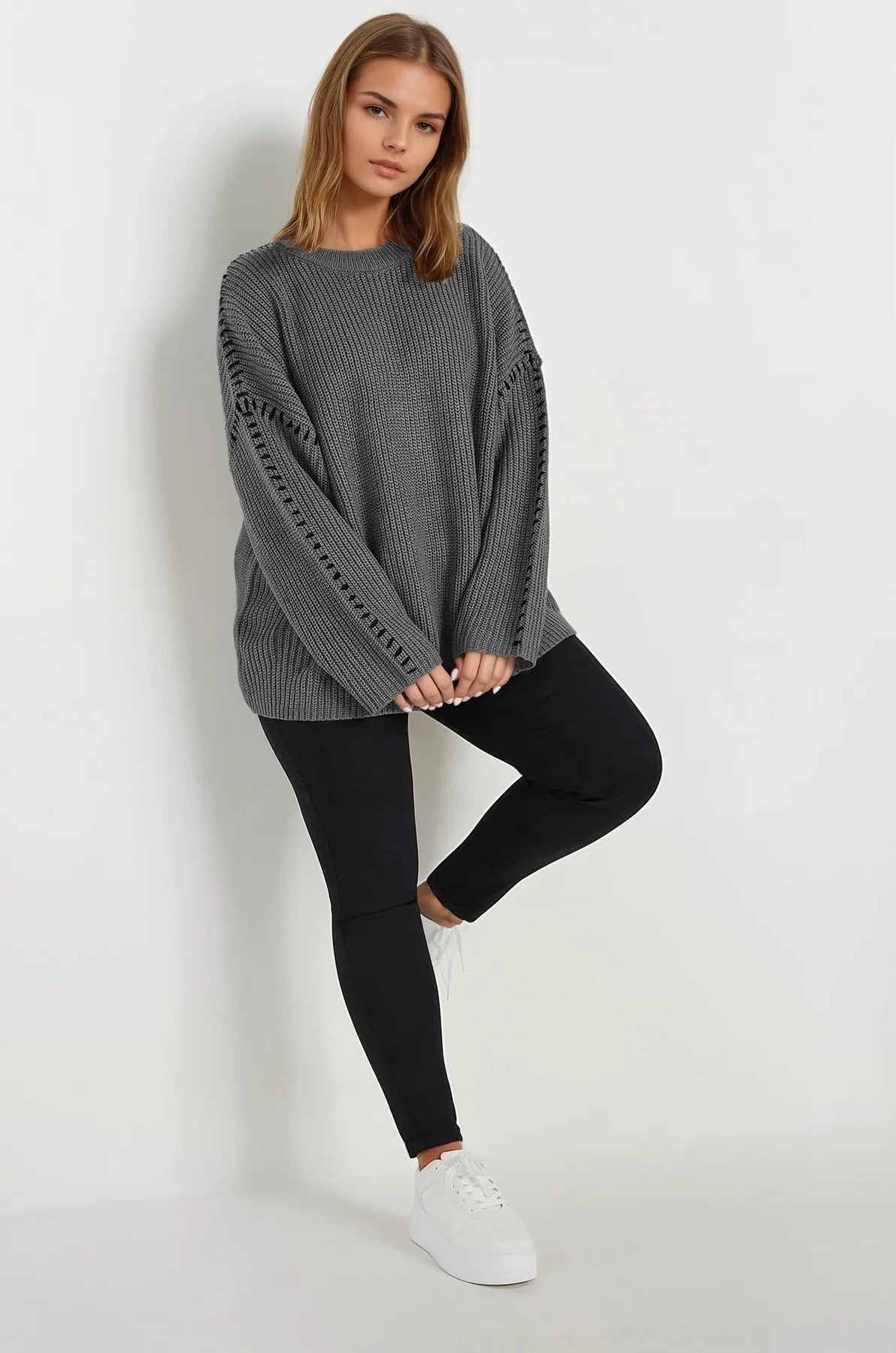 Upgrade your new season wardrobe with this must-have jumper. Made from a soft knitted fabric, it features a blanket stitch detail, long drop shoulder sleeves and a crew neckline.
