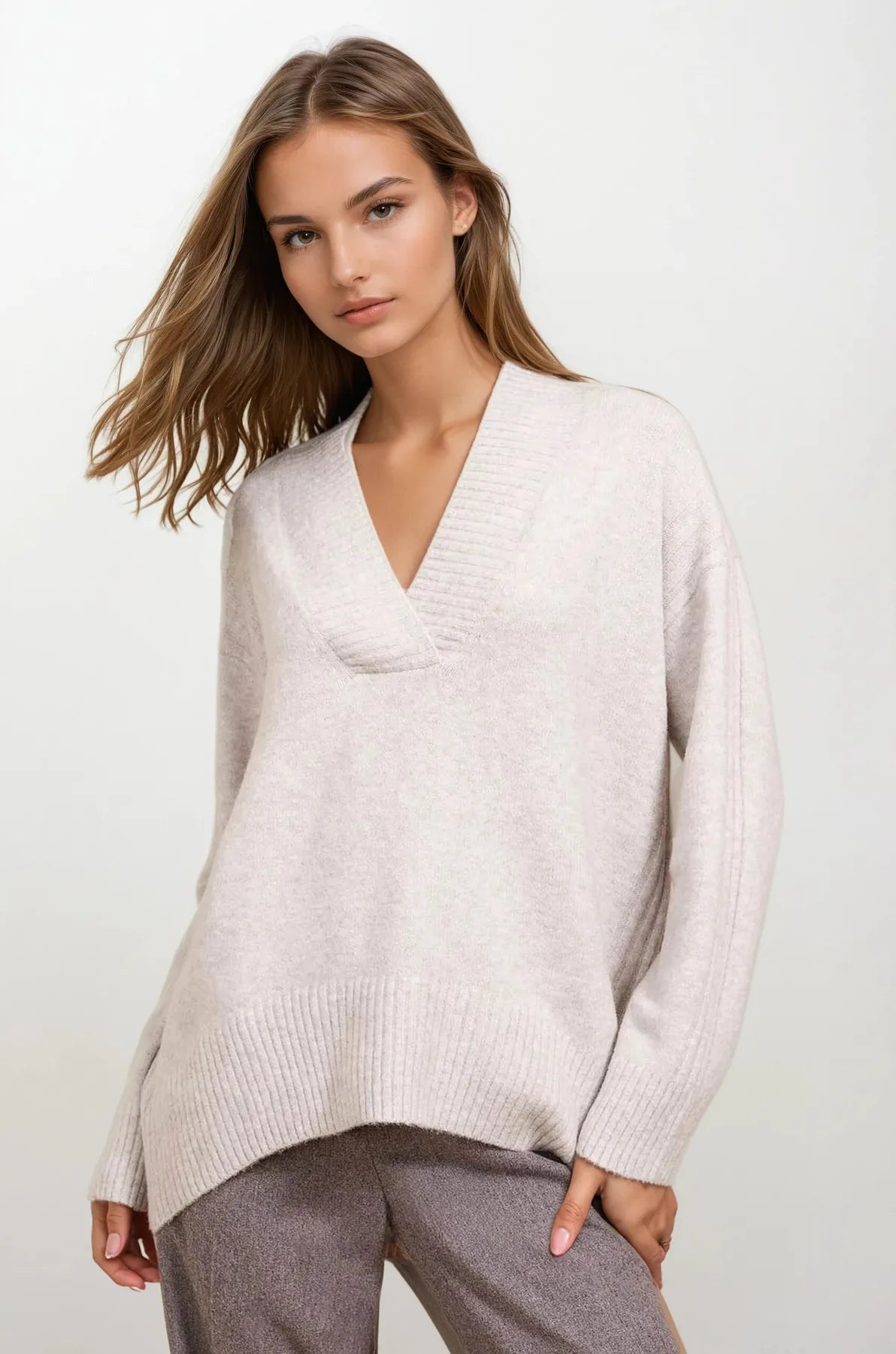 Longline Deep V-Neck Jumper