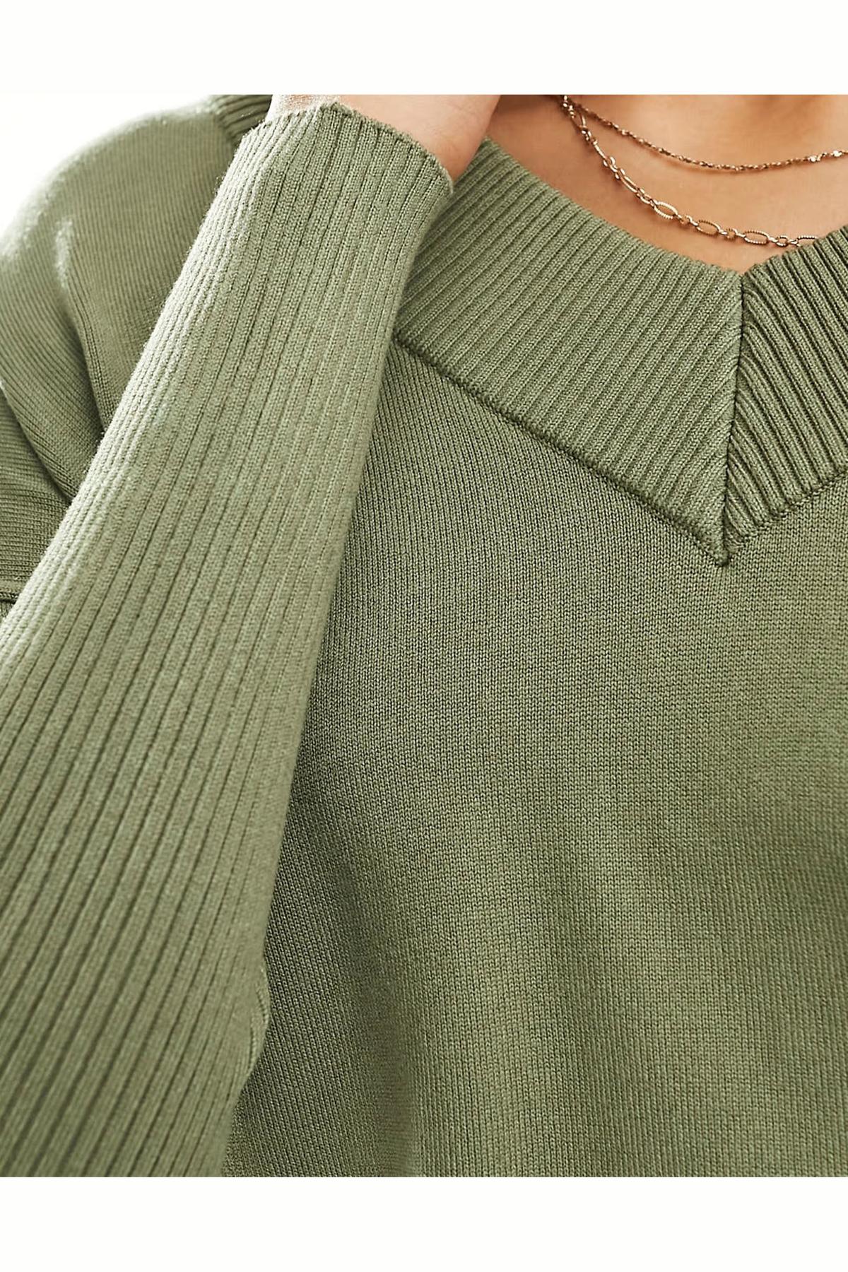 Ribbed V Neck Oversize Jumper