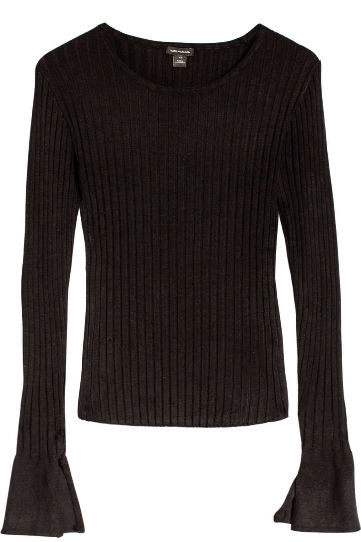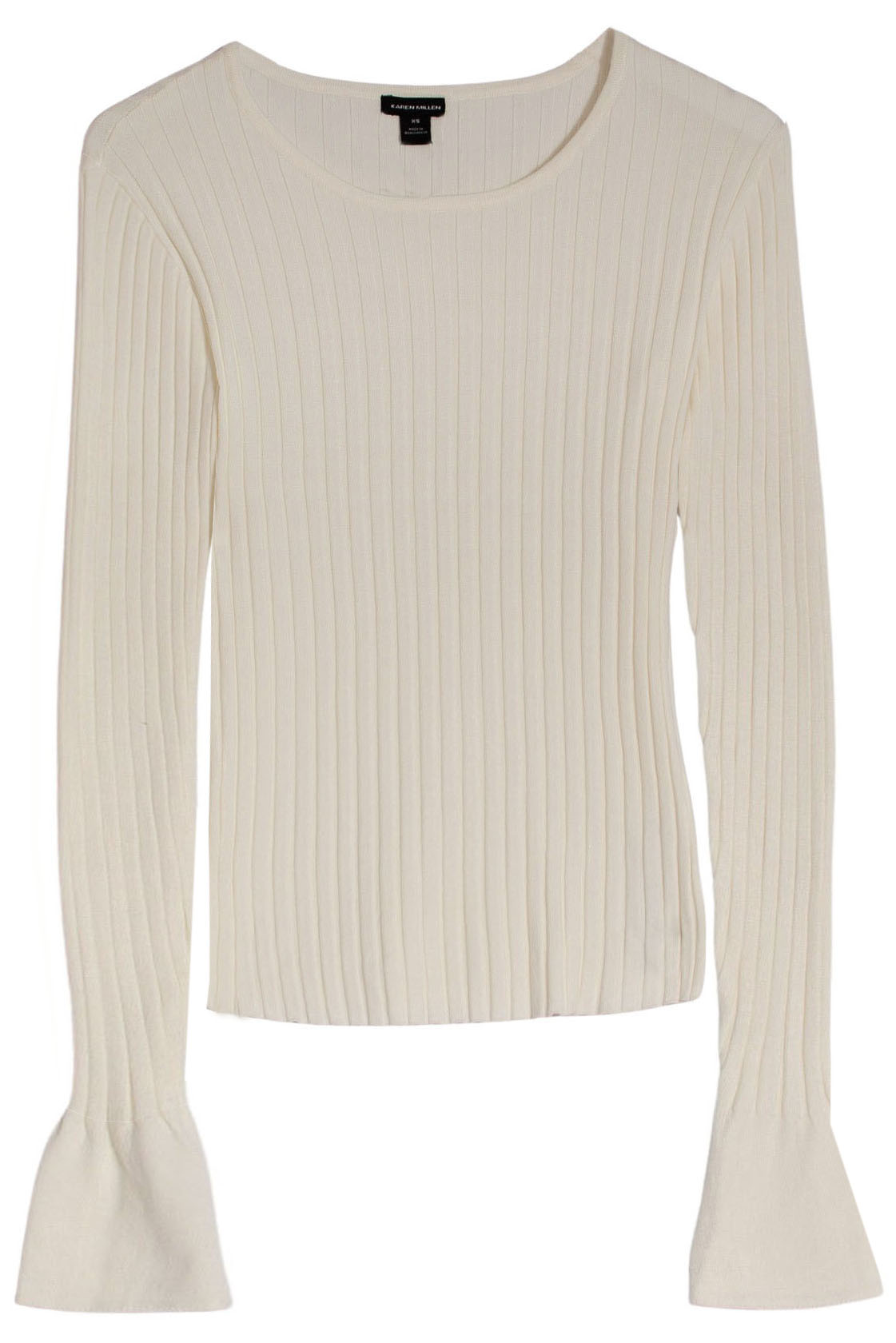 Crafted from soft, light ribbed knit fabric, this fitted top elegantly contours the body for a refined silhouette. With scoop neck and bell sleeves with split cuffs for an elegant finish. Perfect for layering or wearing alone, it effortlessly combines comfort with polished style.