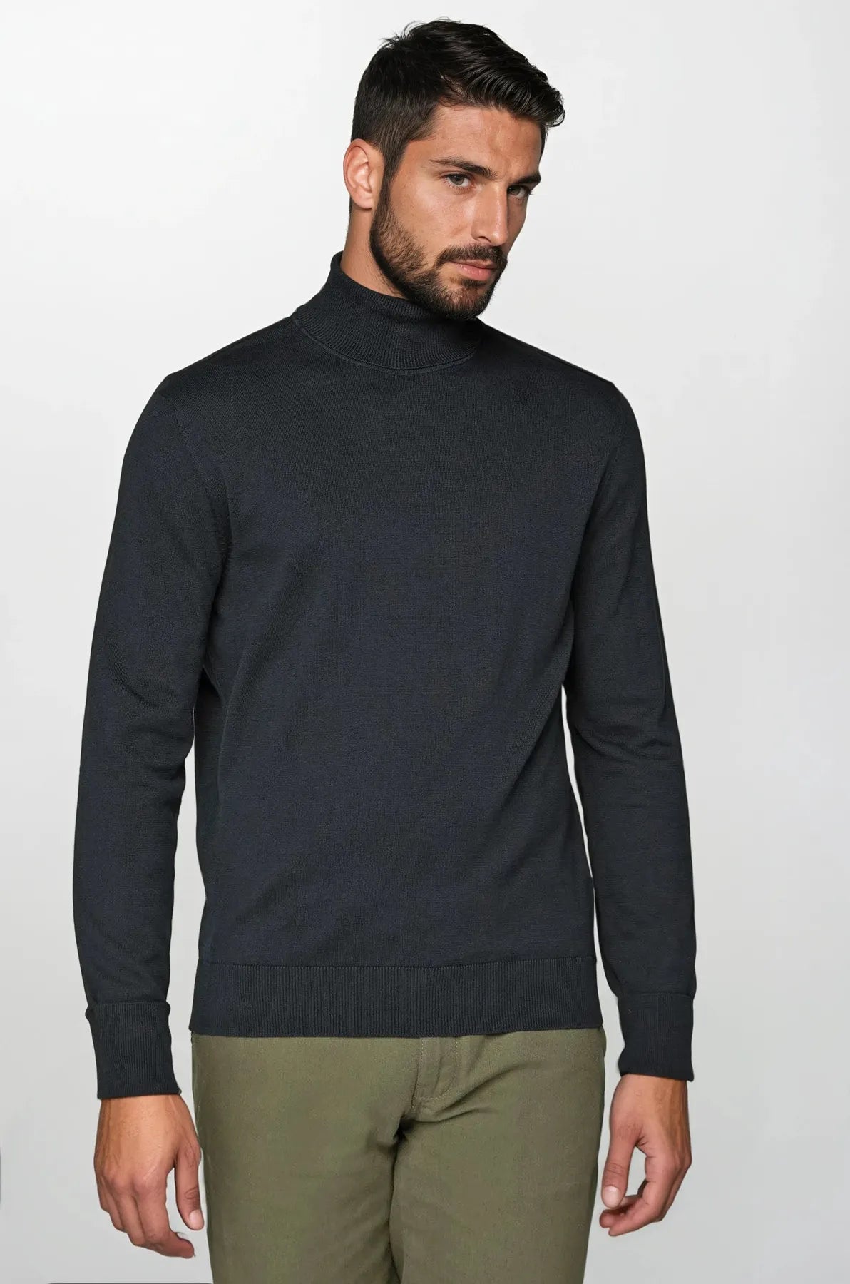 A premium cotton black long sleeved sweatshirt by Ben Sherman, with a roll neck design inspired by the original 1960s turtleneck jumper.
