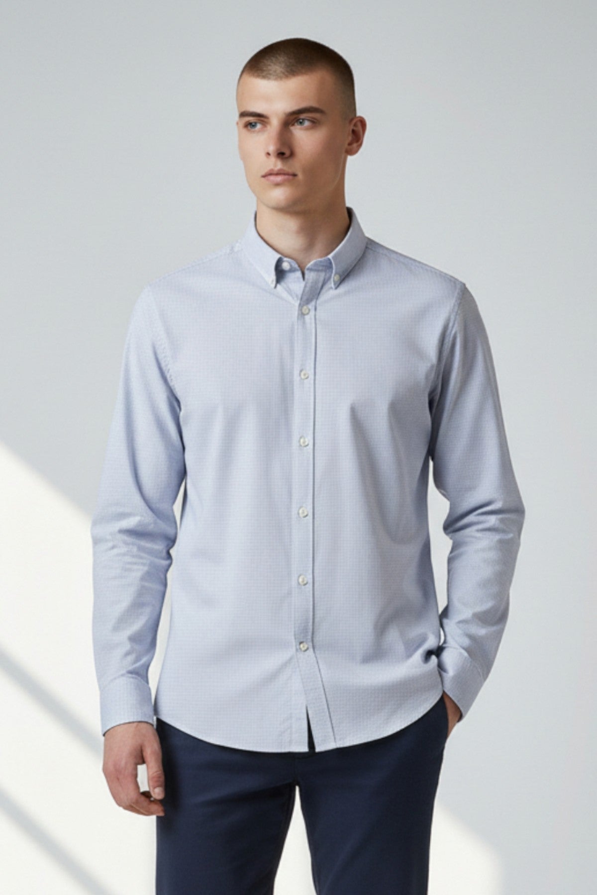 Get ready for work or formal occasions in this smart shirt, crafted from breathable cotton. It's cut to a regular fit, with a classic collar and single cuffs. The textured material boasts a micro-diamond texture