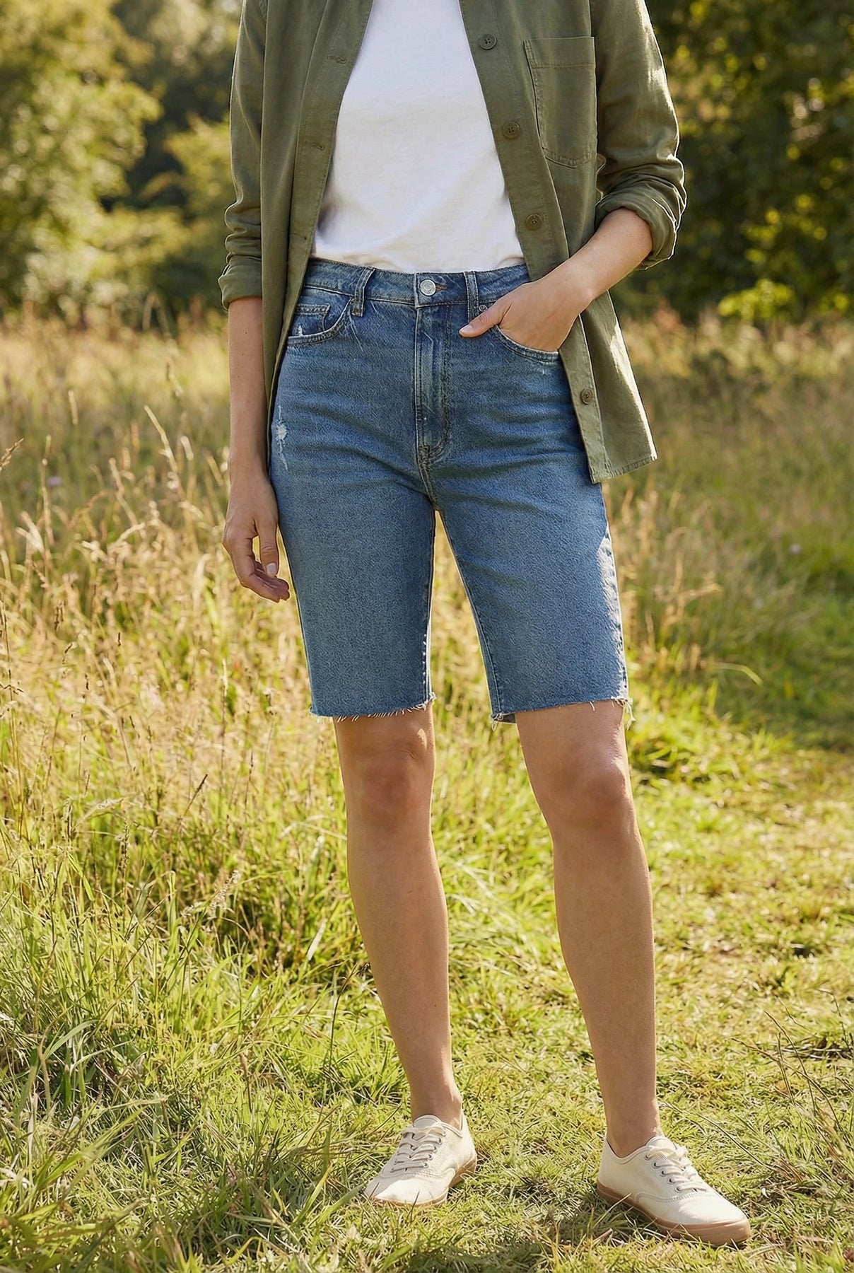 - Fabric feel: Breezy, lightweight denim