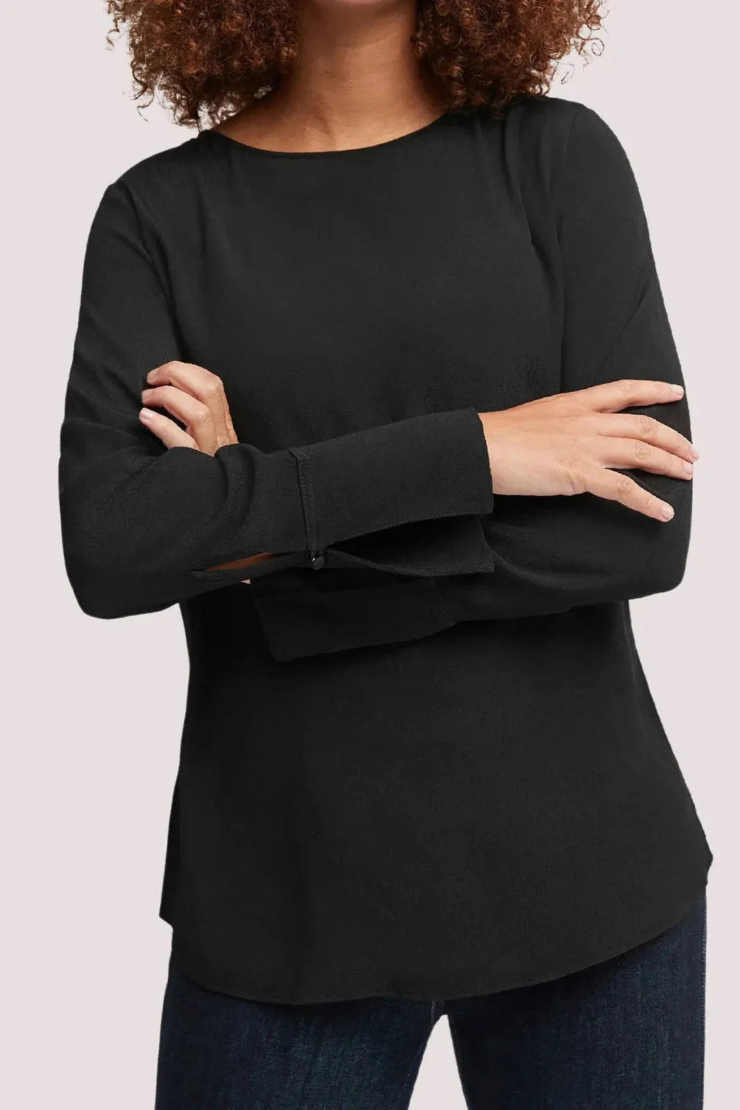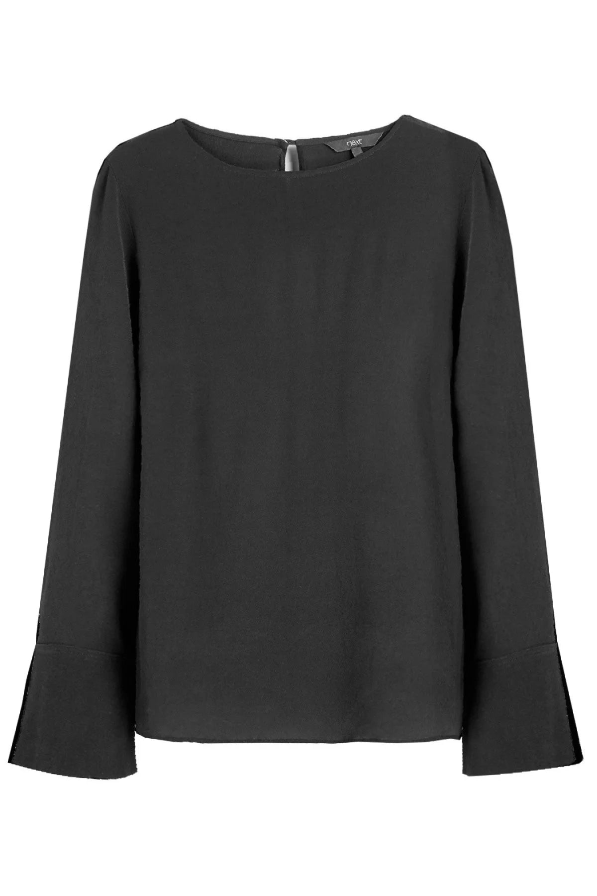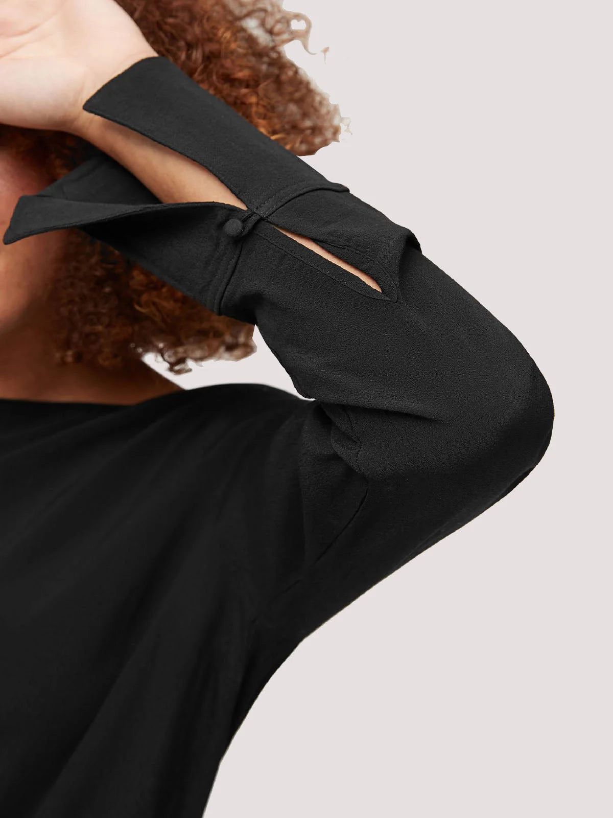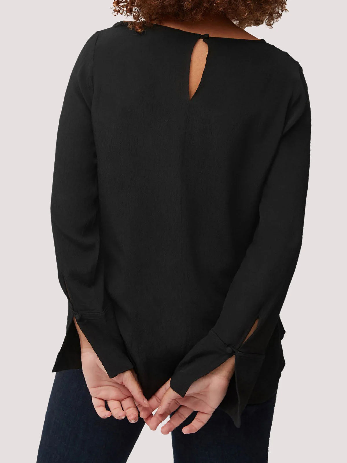 This deep-cuff long-sleeved top is perfect for your casual wardrobe, styled in a loose shape with self-fabric covered buttons and a keyhole detail at the back. Similarly, dress this blouse up with a cute pair of heels, jeans, or a skirt.