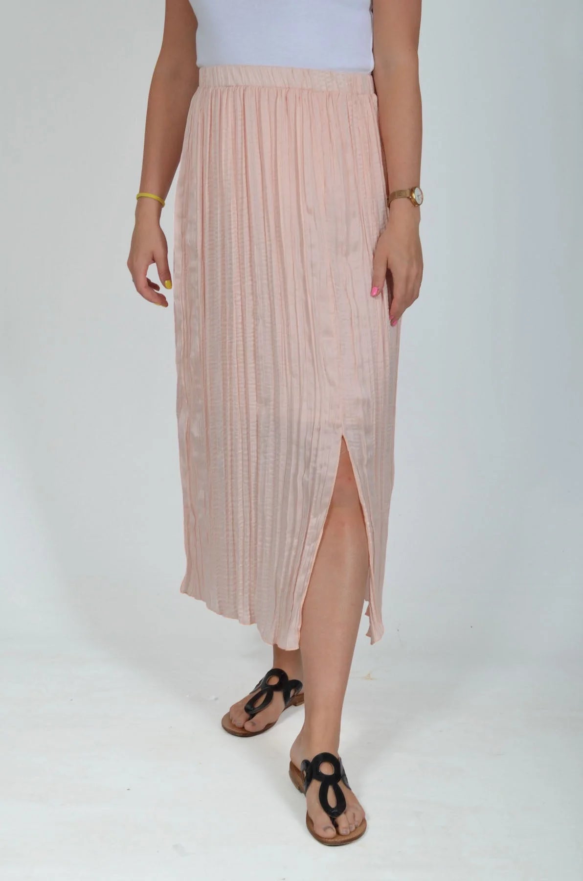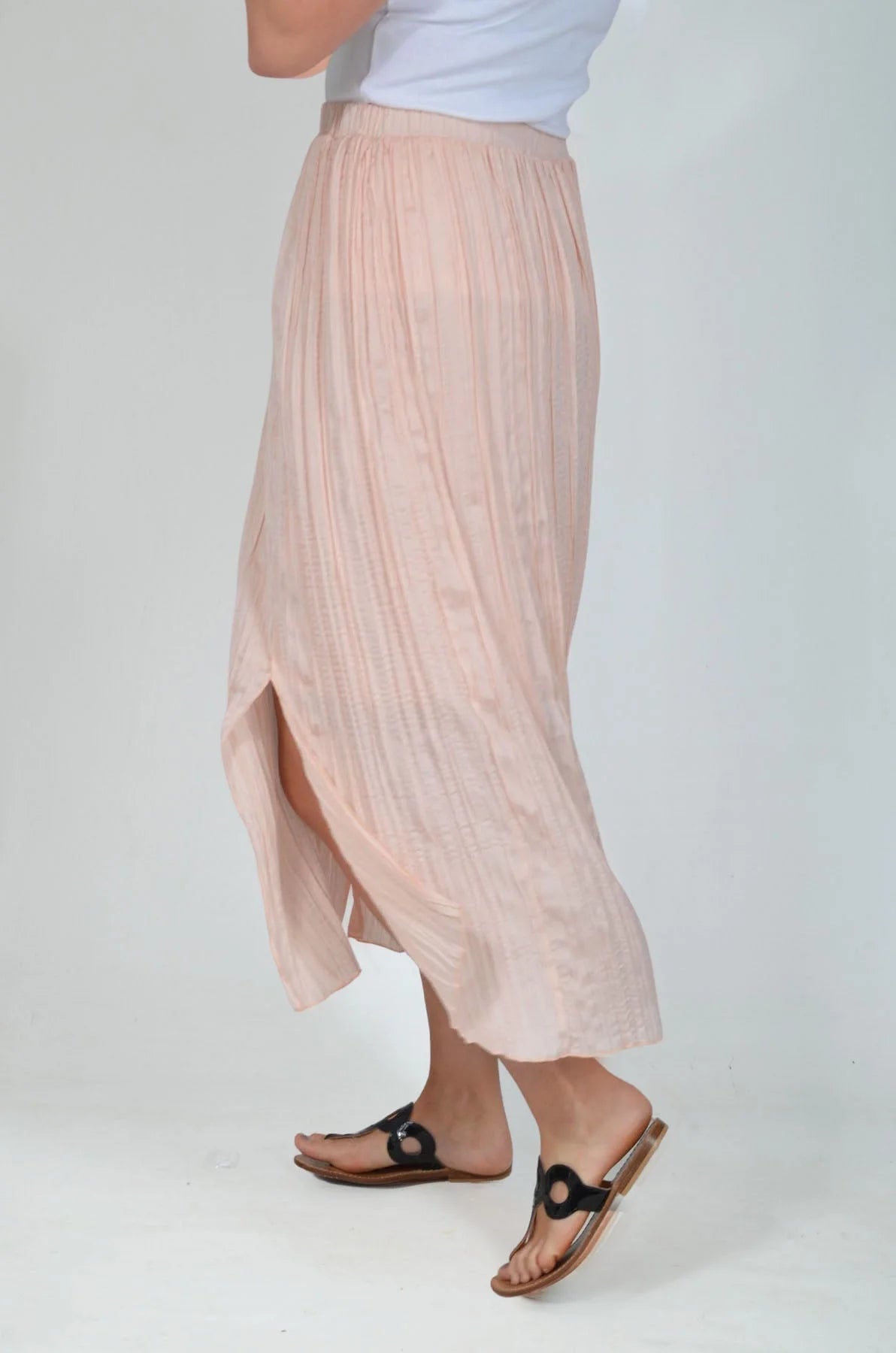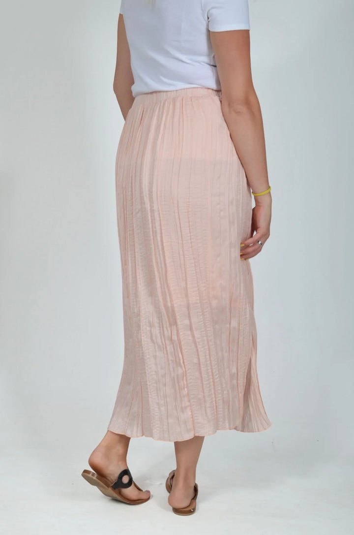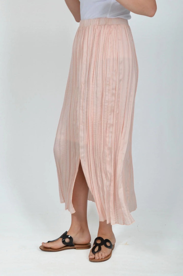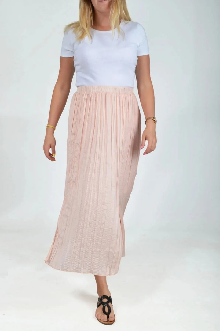 Pretty meets comfortable in the Pale Pink Plisse Skirt. Lightweight crushed silk style fabric sits beautifully against skin, and crinkles when you walk, creating soft charm at each step. Created to class up your favorite top, this skirt is one of our most versatile styles to wear for almost any occasion with ease.
