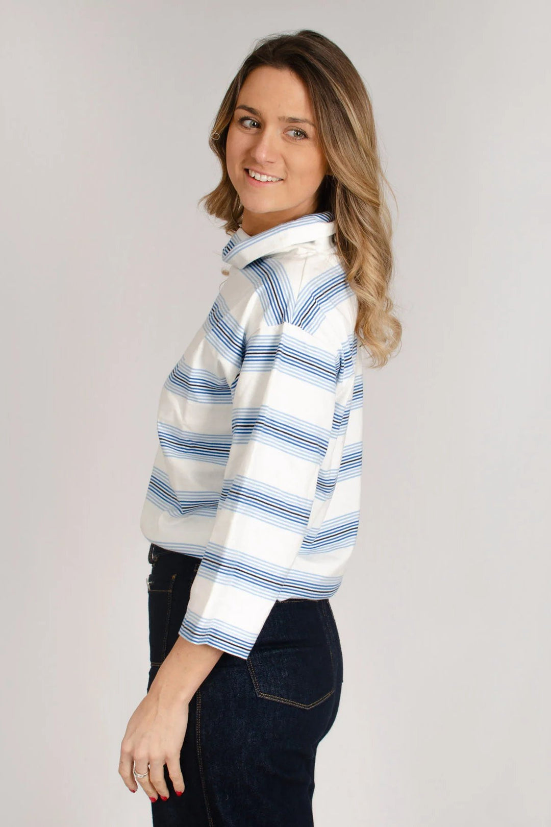 The kind of top you need for early Spring, and the perfect layer for Autumn.  Made with a wide Funnel Roll Neck and 3/4 Sleeve.  Finished with the Crew Logo on back neck.Soft Cotton Fabric