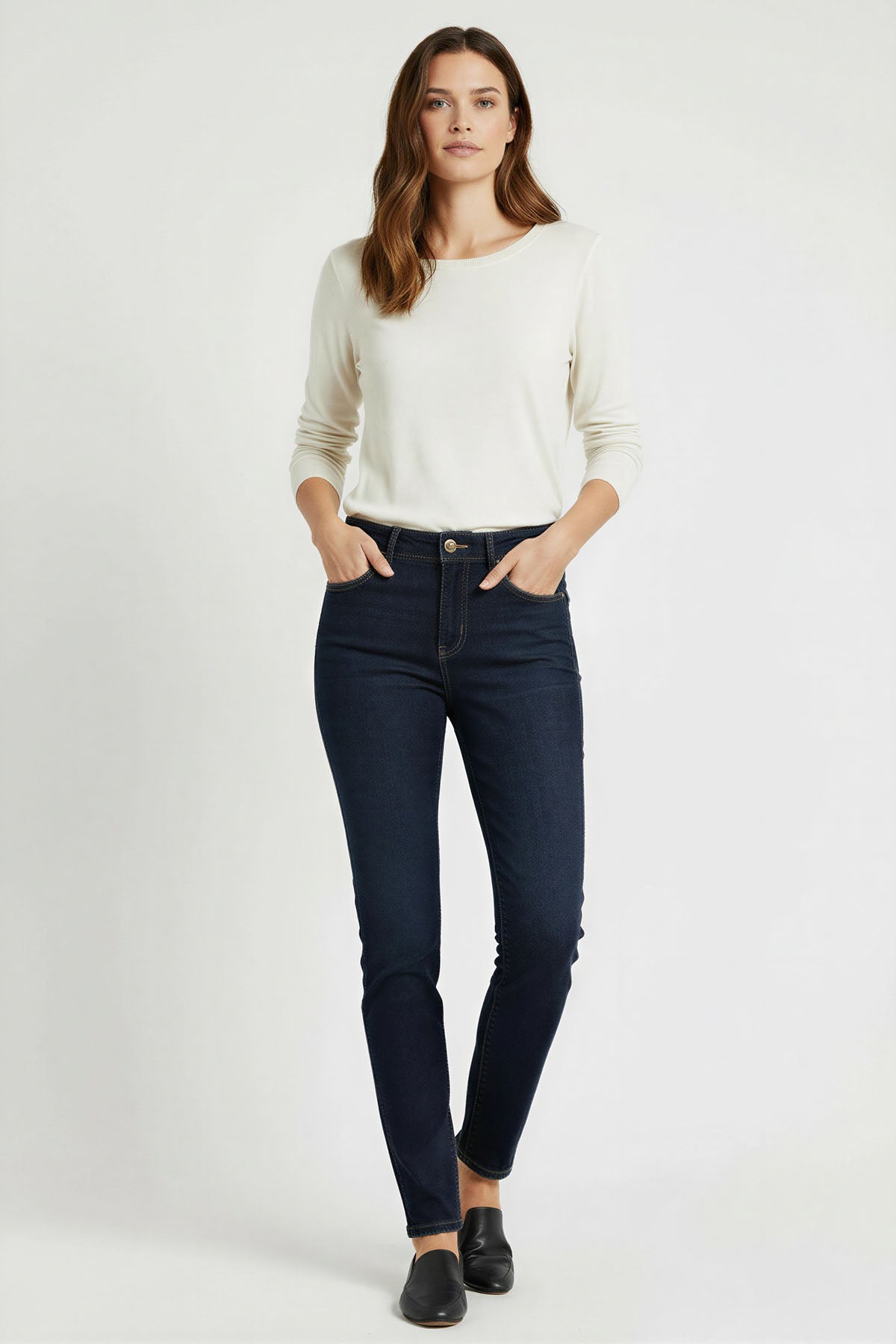 These everyday jeans are made from stretch denim for a comfort fit.  Cut in a slim leg and mid-rise waist for a flattering fit.