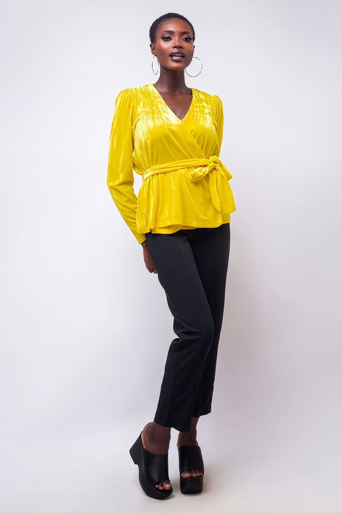 Yellow Velvet Wrap Top