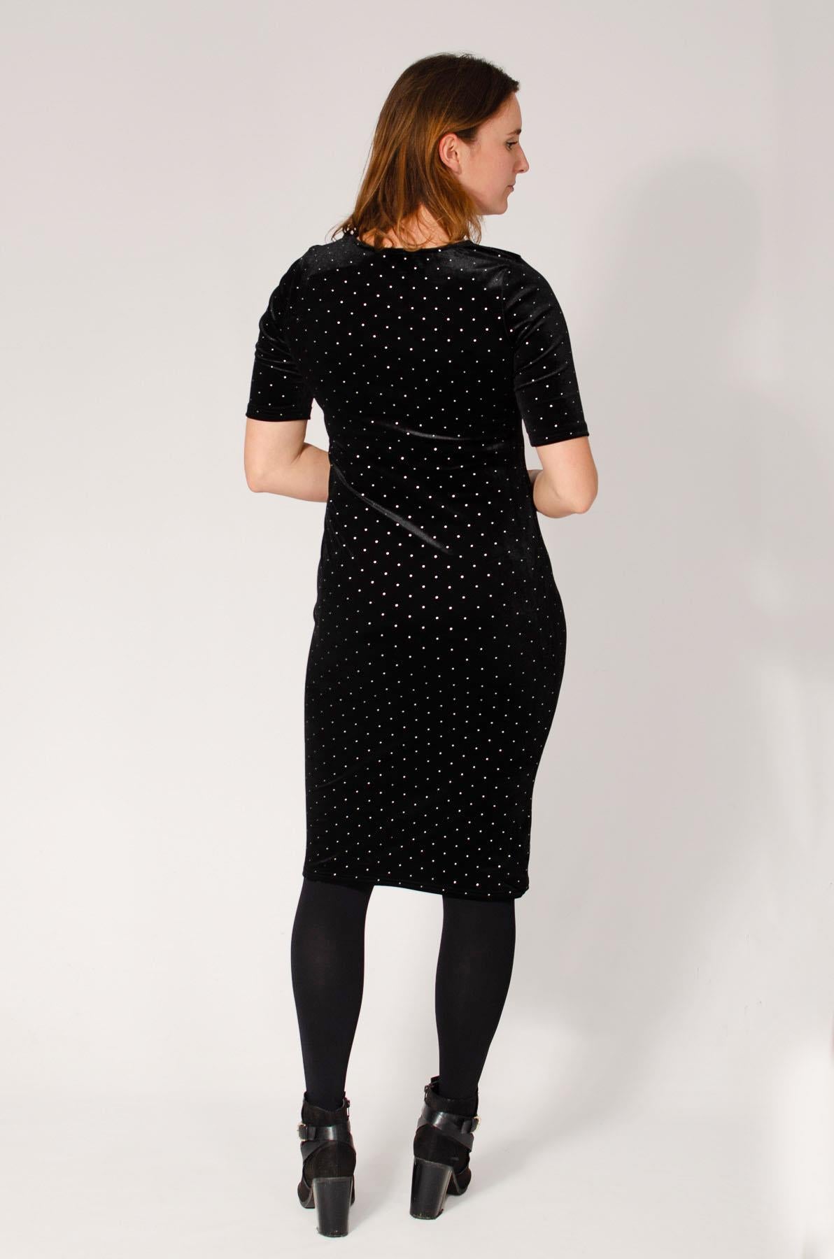 Perfect for that christmas party, this classic black velvet midi has subtle studded detail and a stretch fit for a super flattering look.