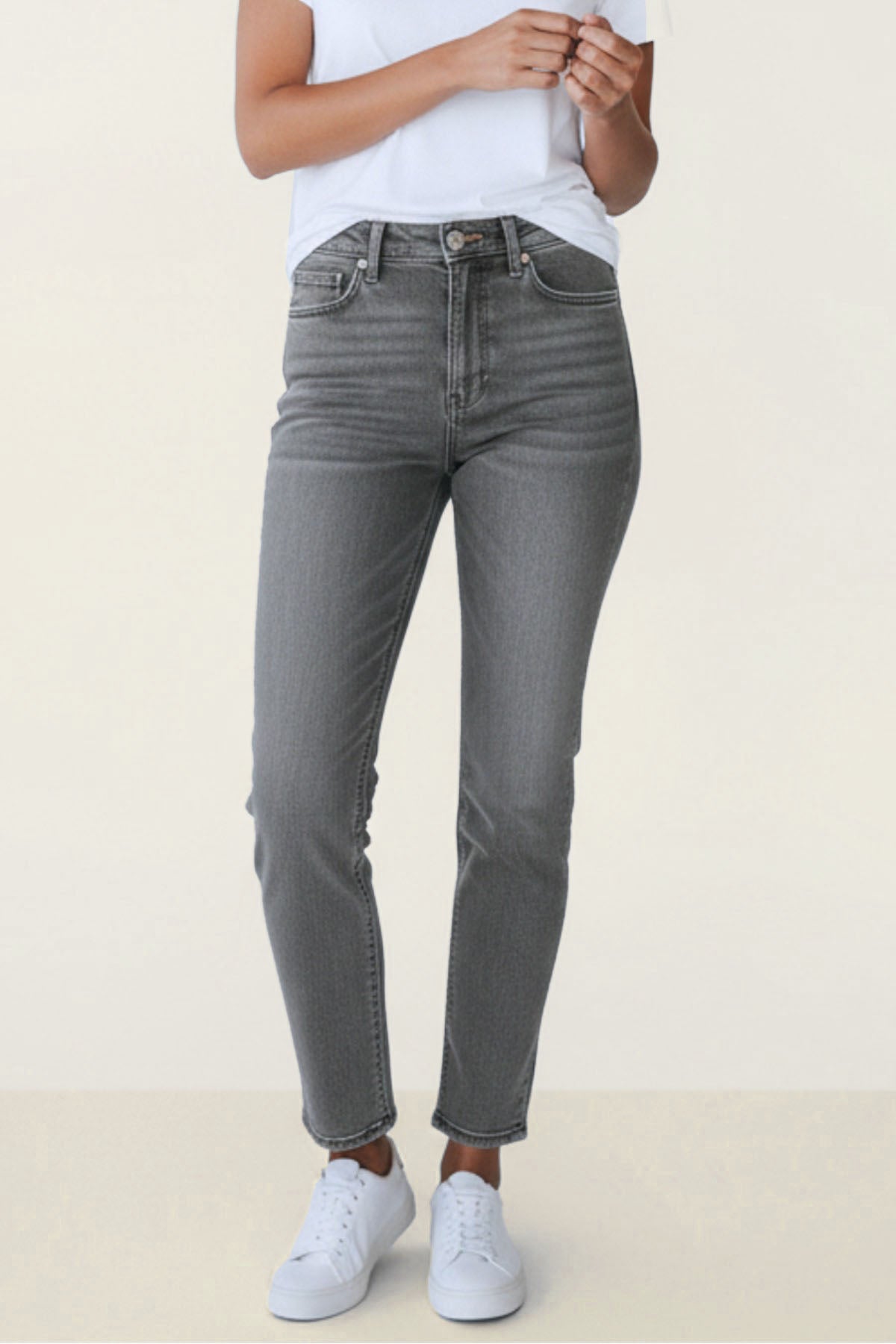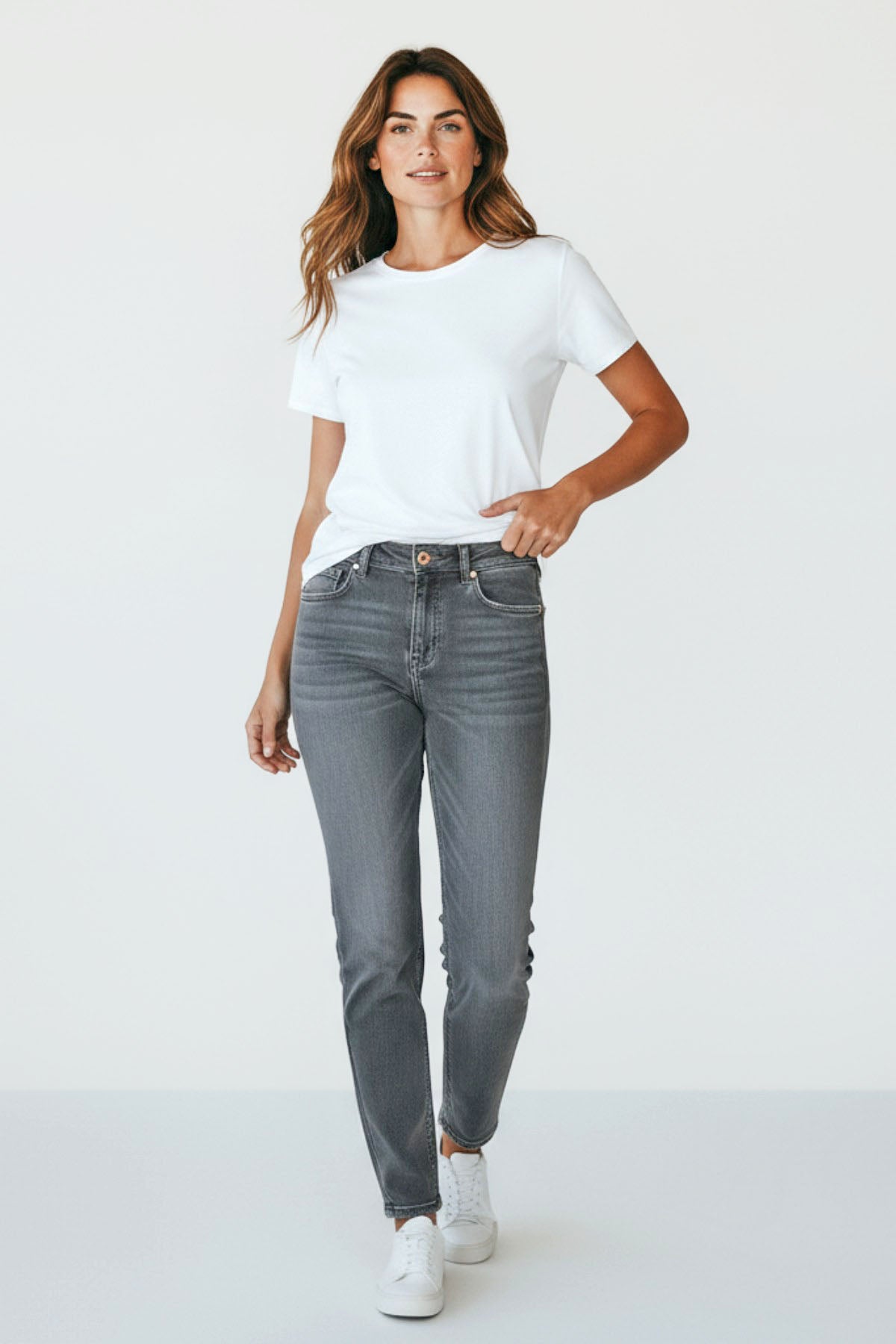 These everyday jeans are made from stretch denim for a comfort fit.  Cut in a slim leg and  mid-rise waist offers flattering coverage.