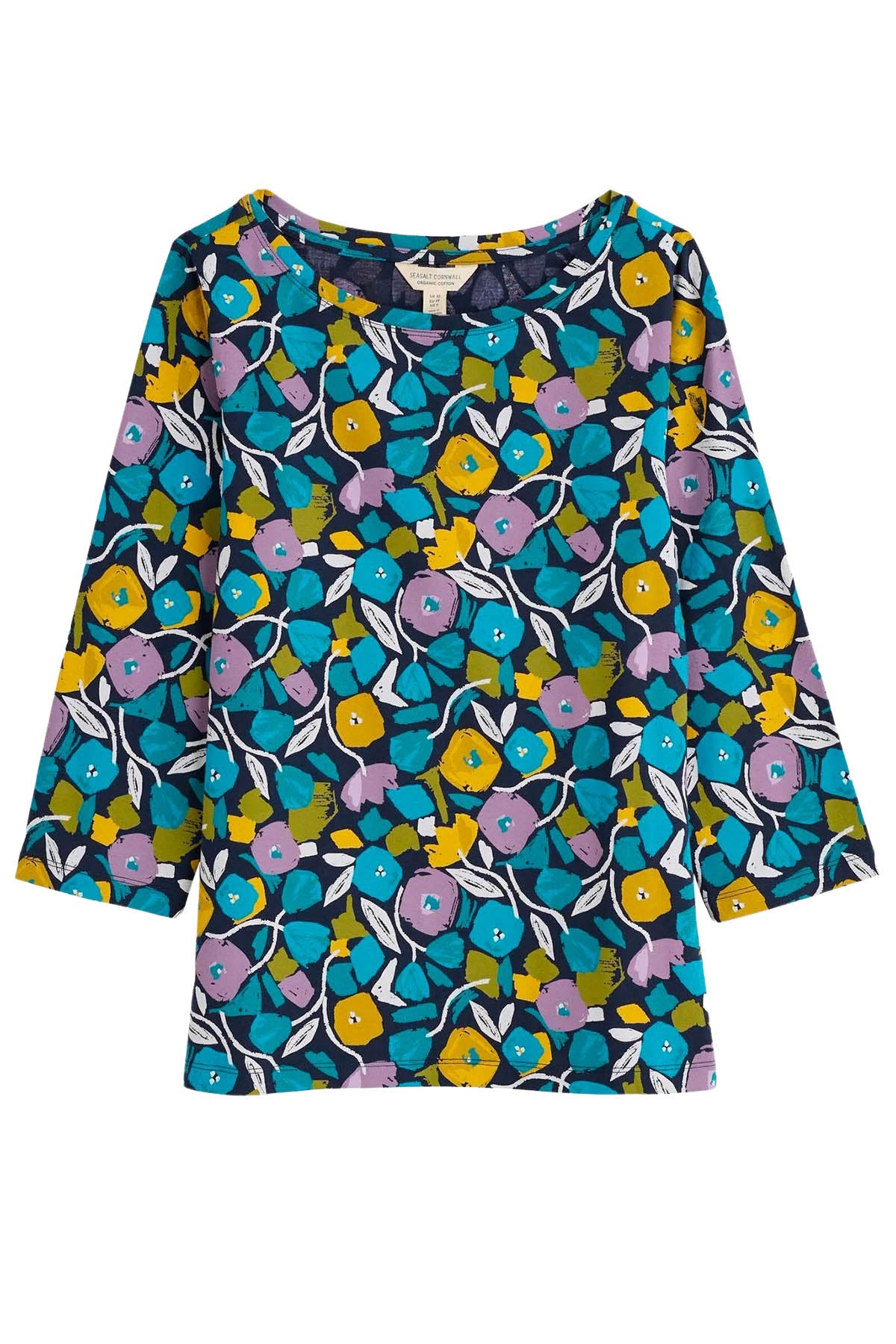 Introducing the Seasalt 3/4 Easel Top - a versatile and timeless wardrobe essential. Made with soft organic cotton jersey and a touch of stretch, this top offers a comfortable fit and easy layering. The boat neck and 3/4 length sleeves add a touch of elegance and style. Perfect for any season.