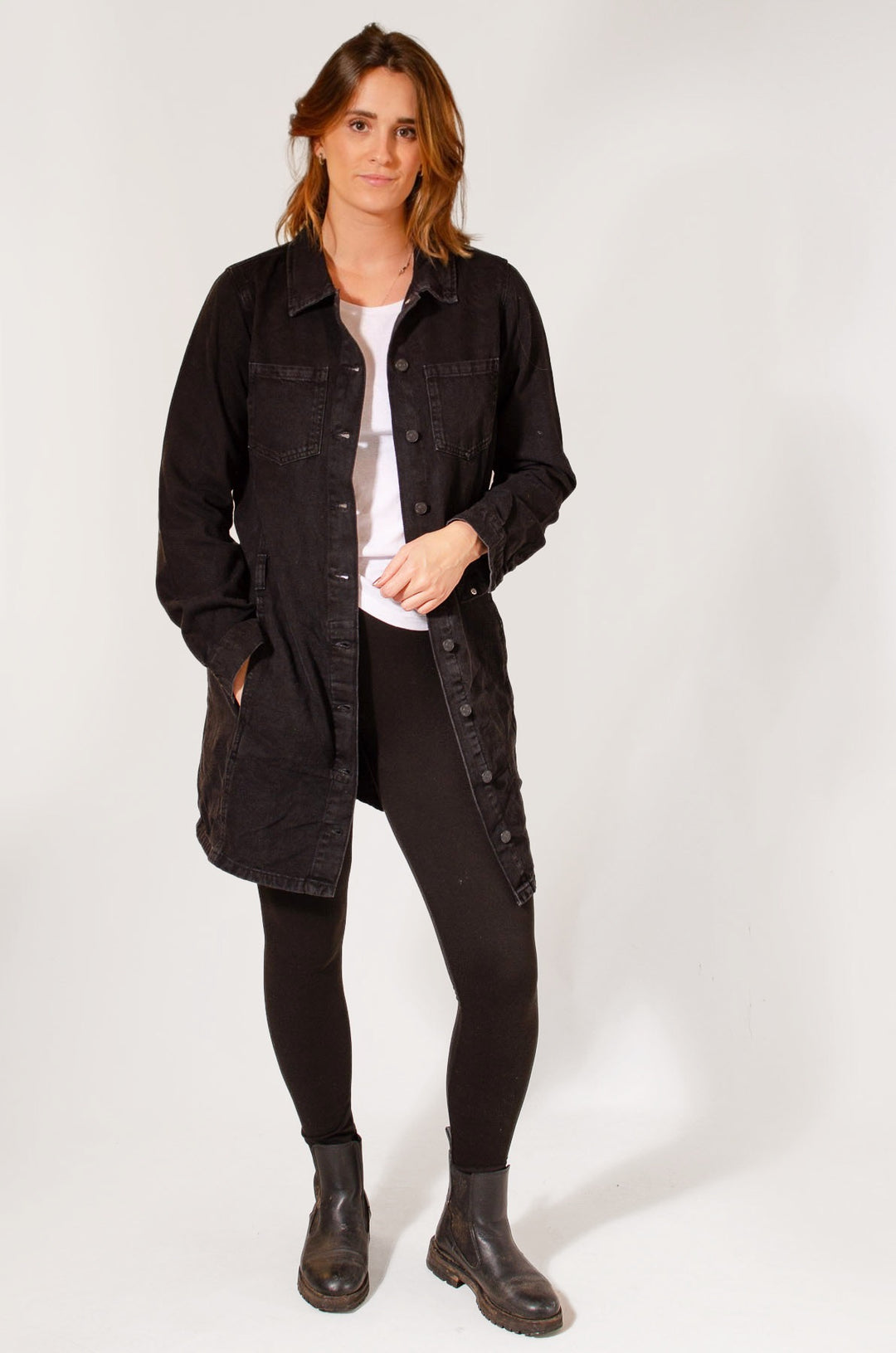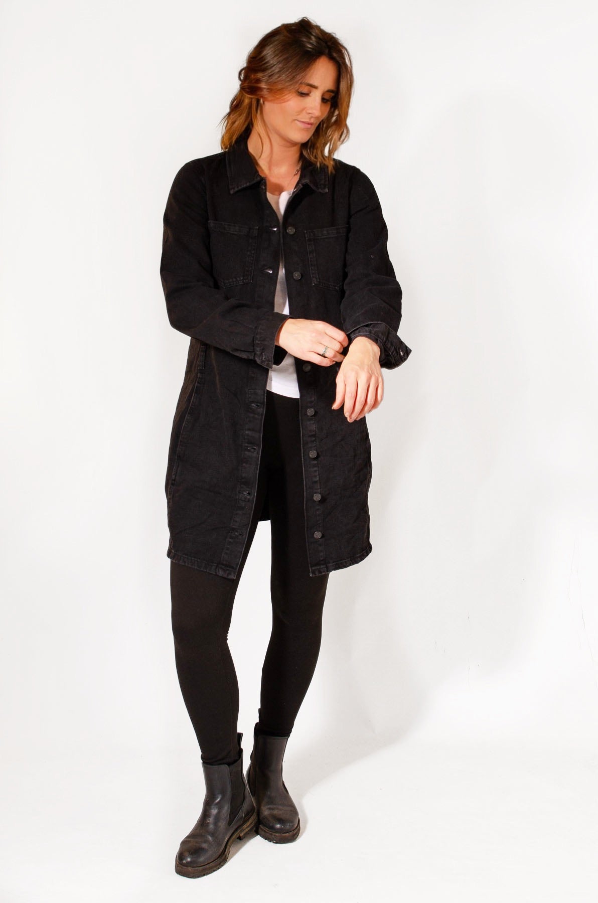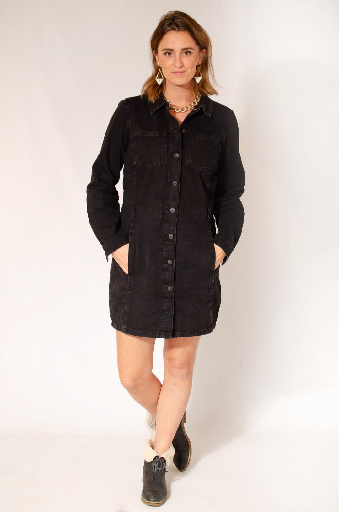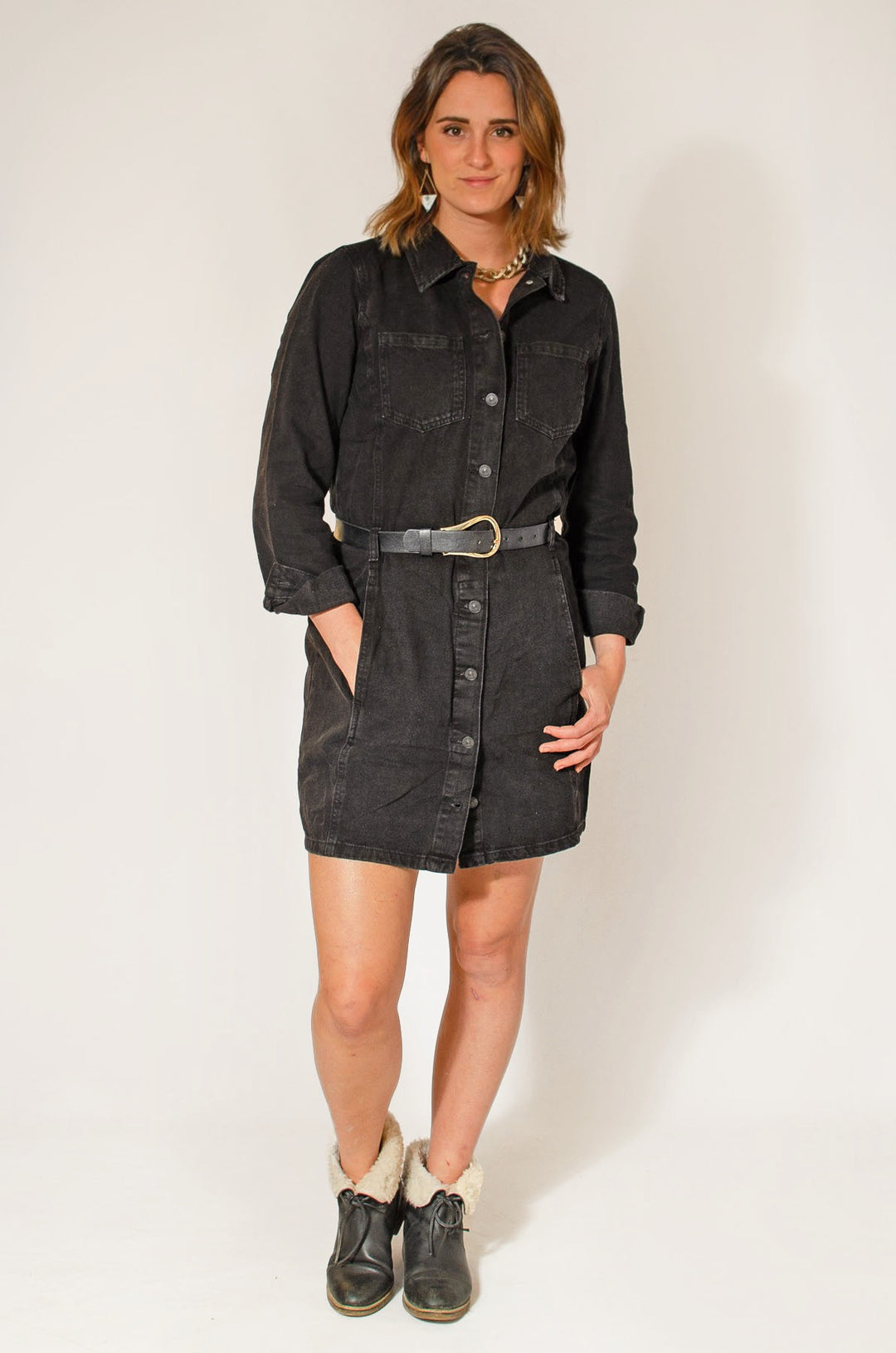 Stay stylish and confident with this structured denim dress that will take you from work to play effortlessly. Complete the look with a statement belt and chunky boots - the perfect addition to your autumn winter wardrobe!