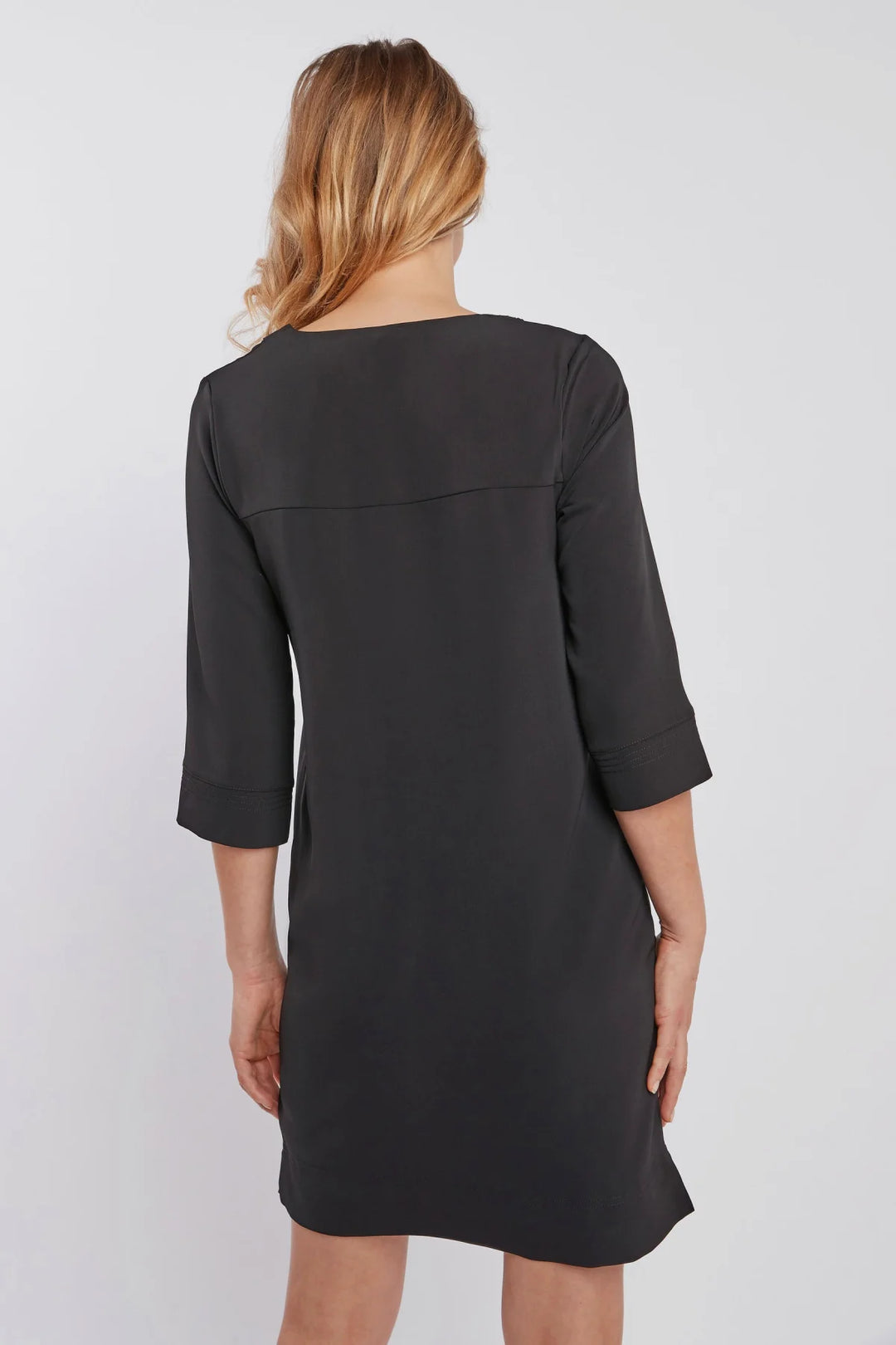 This Overstitch V Neck Ponte Dress is a simple and elegant LBD. Made from a lightweight, fluid fabric that allows for a comfortable fit, its fashionable 3/4 flare sleeves and unparalleled versatility will make it one of your wardrobe staples.