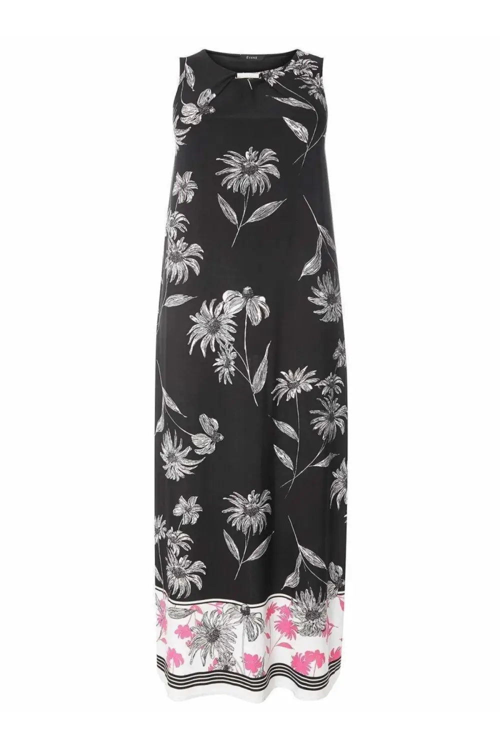 Pretty Floral Sleeveless Dress in Black &Ivory with Hint of Pink, Ideal for the coming summer months to stay cool and look great!