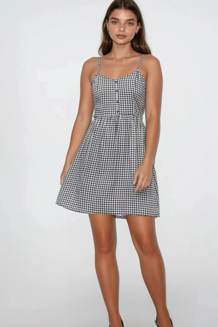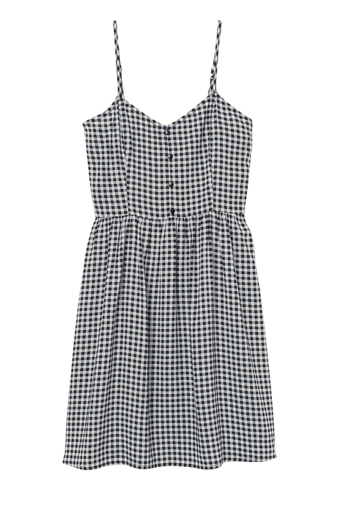Step into summer with this pretty strappy dress. Delicately crafted with a fit & flare style and adjustable spaghetti straps, it will hug your body in all the right places. The mock button front adds a touch of sophistication to this pretty mini slip dress. Finished a side zip fastening for a perfect fit.