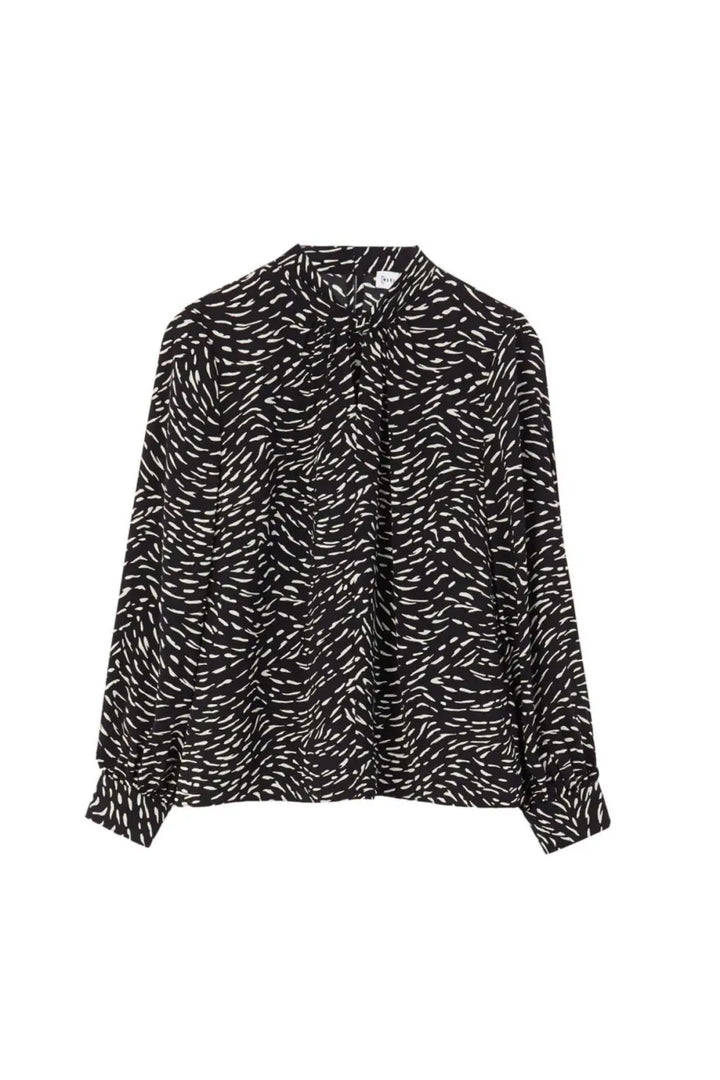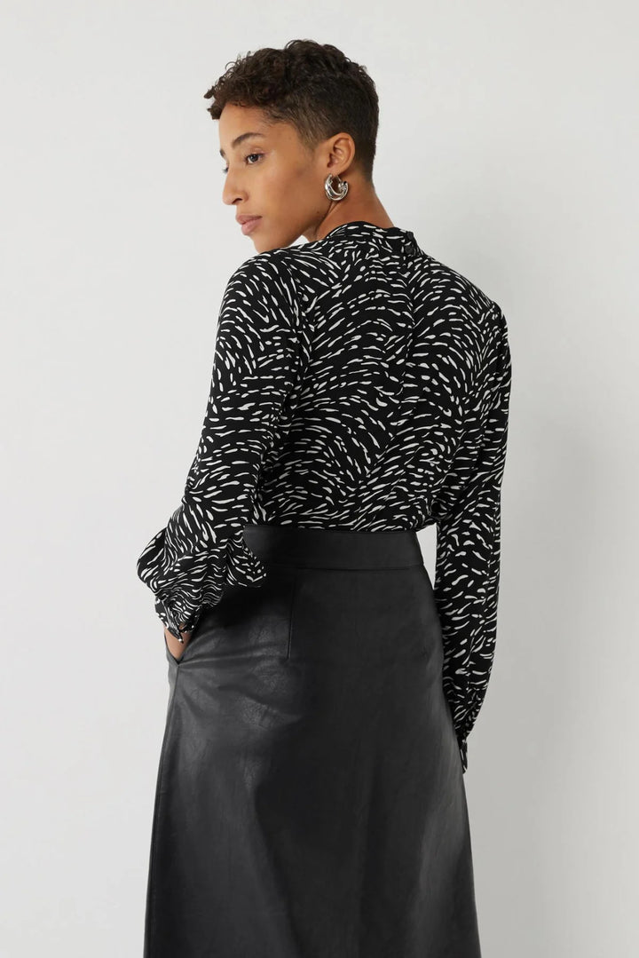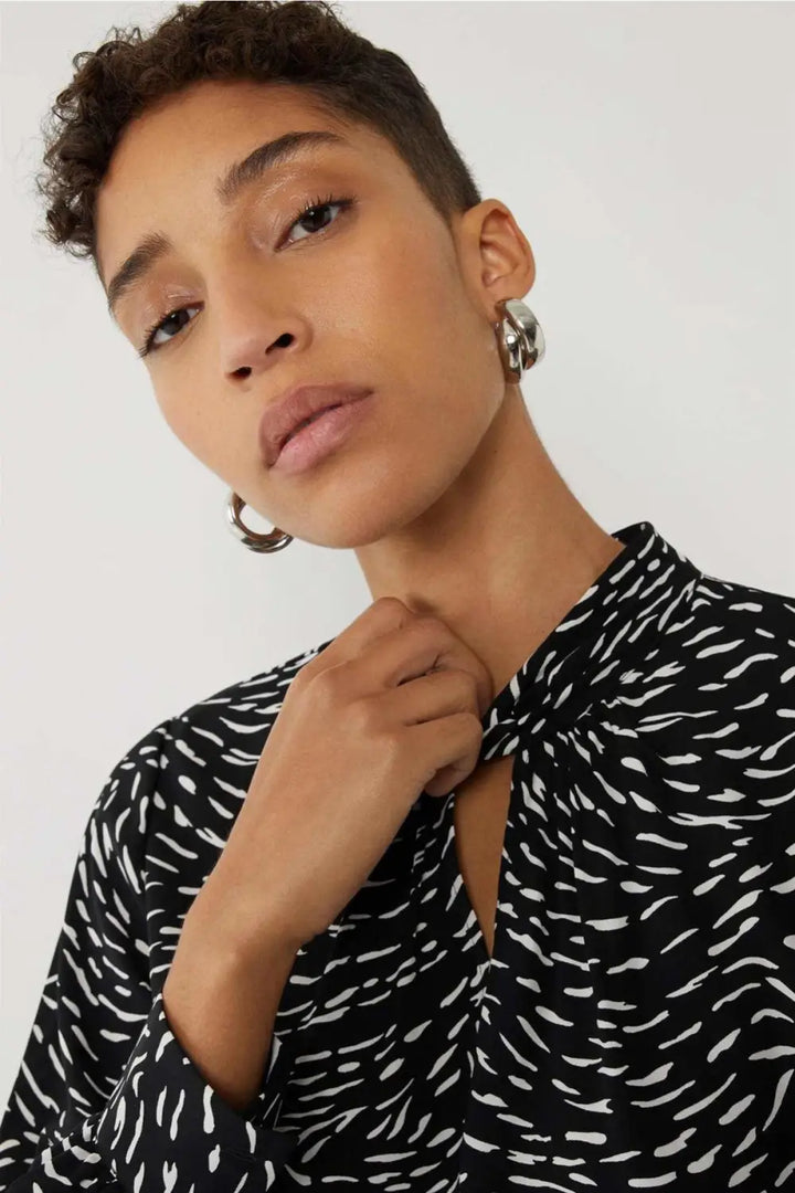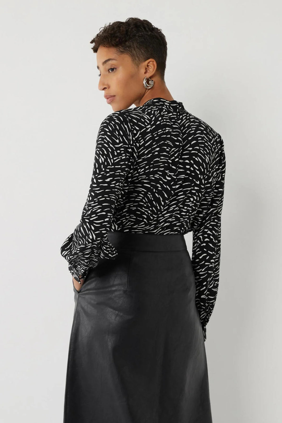 Warehouse White Print Silky Keyhole Blouse Black / 6