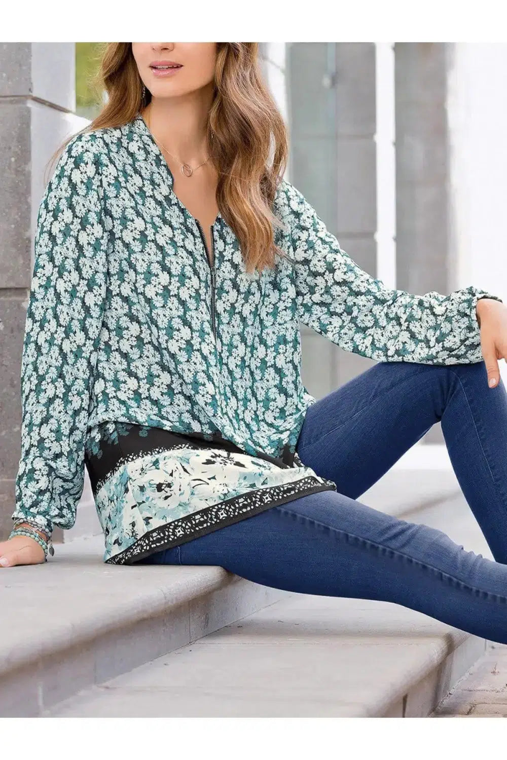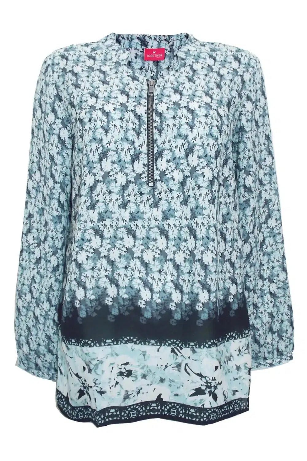 Keep your everyday look stylish with this relaxed fit top. Wear loose with leggings or belted over your favourite jeans. Made from a lightweight woven fabric, with long zip neck and long sleeves with single button cuff.