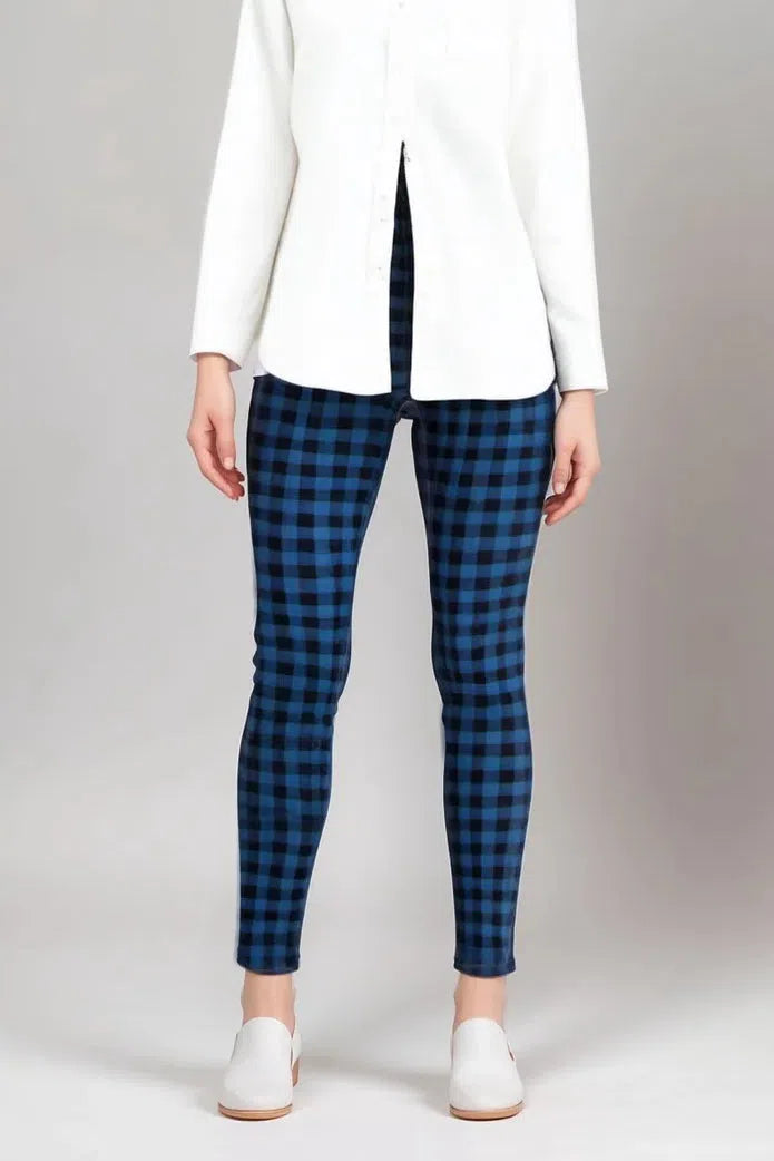 French Blue and Black Dogtooth Check, Faux Fly Fastening At Front, Super Comfortabl Stretch Cotton Jersey, Sizing: Runs Large