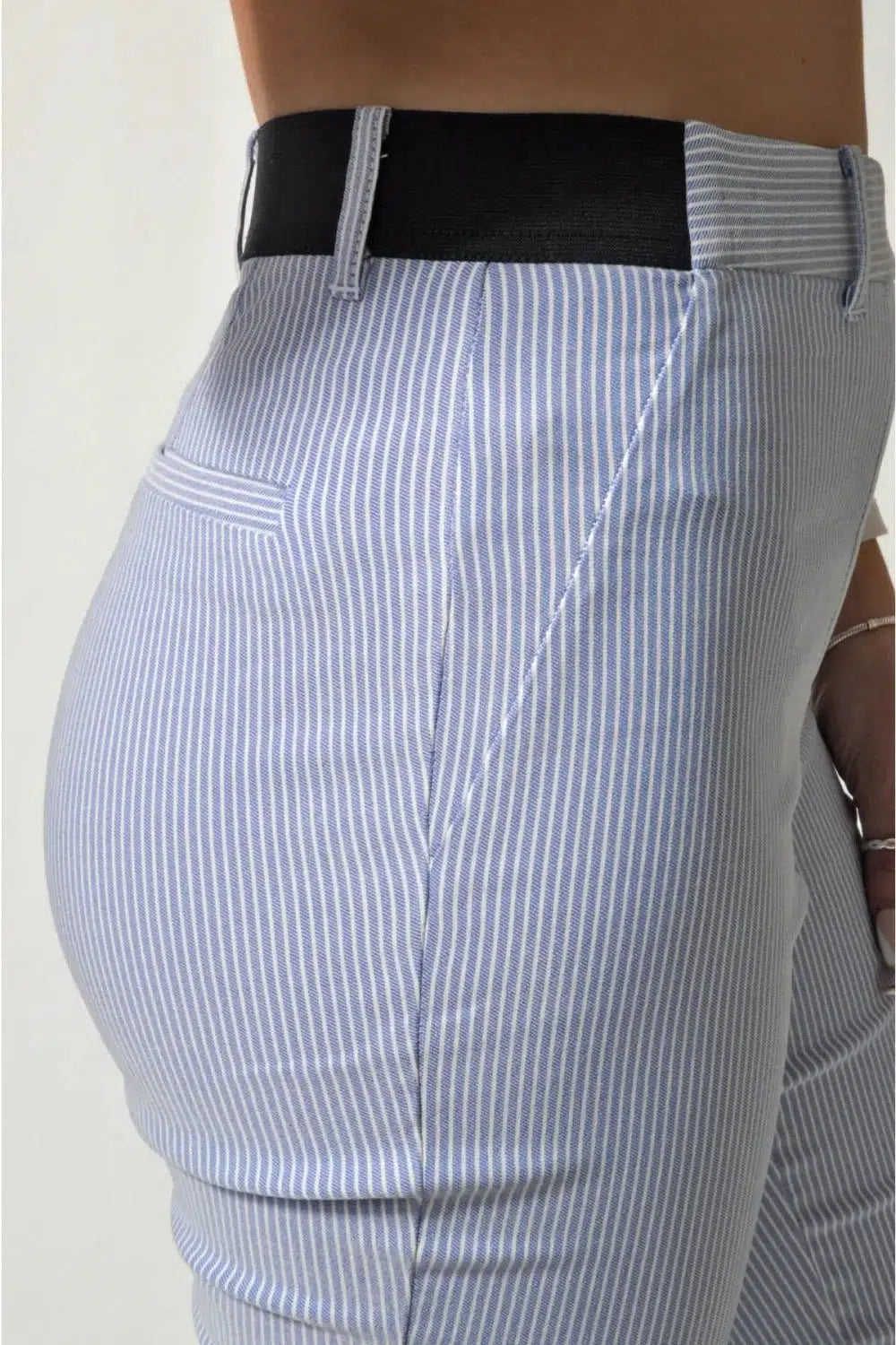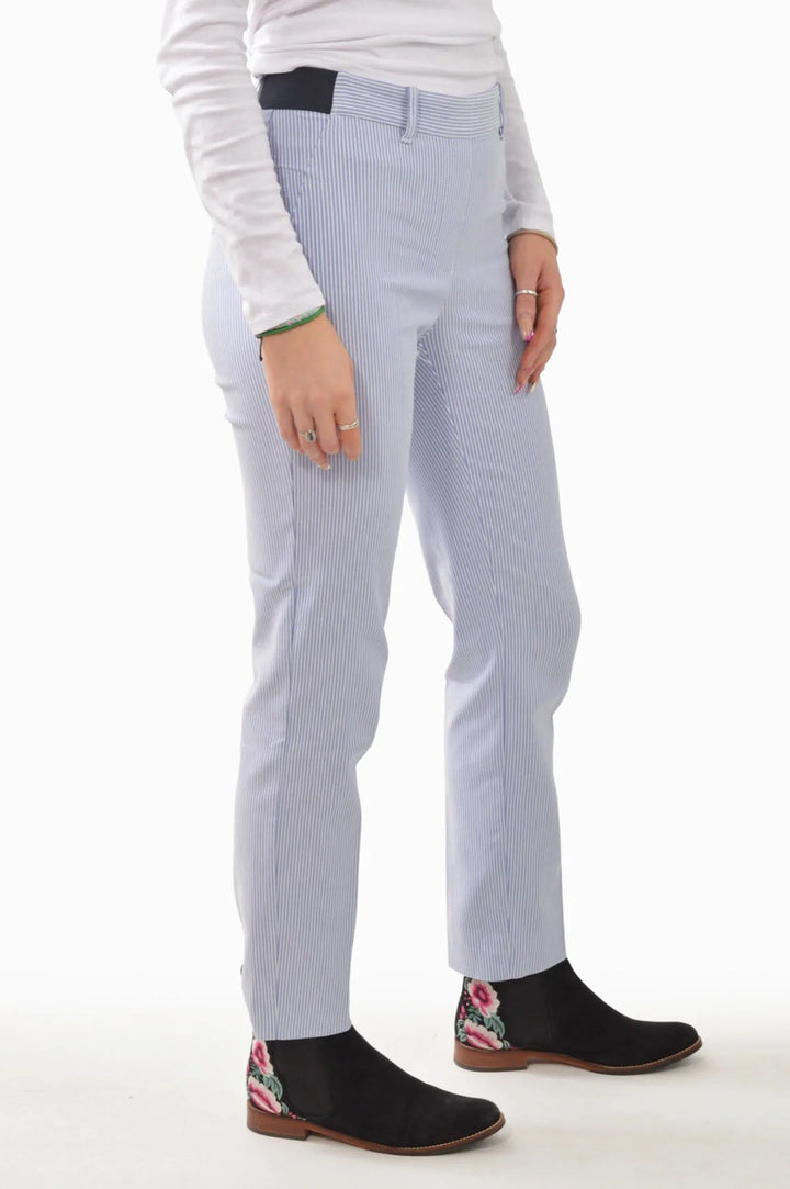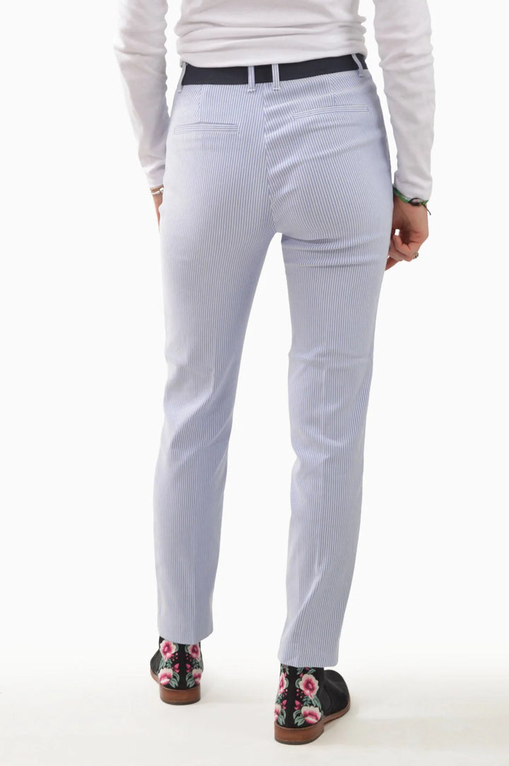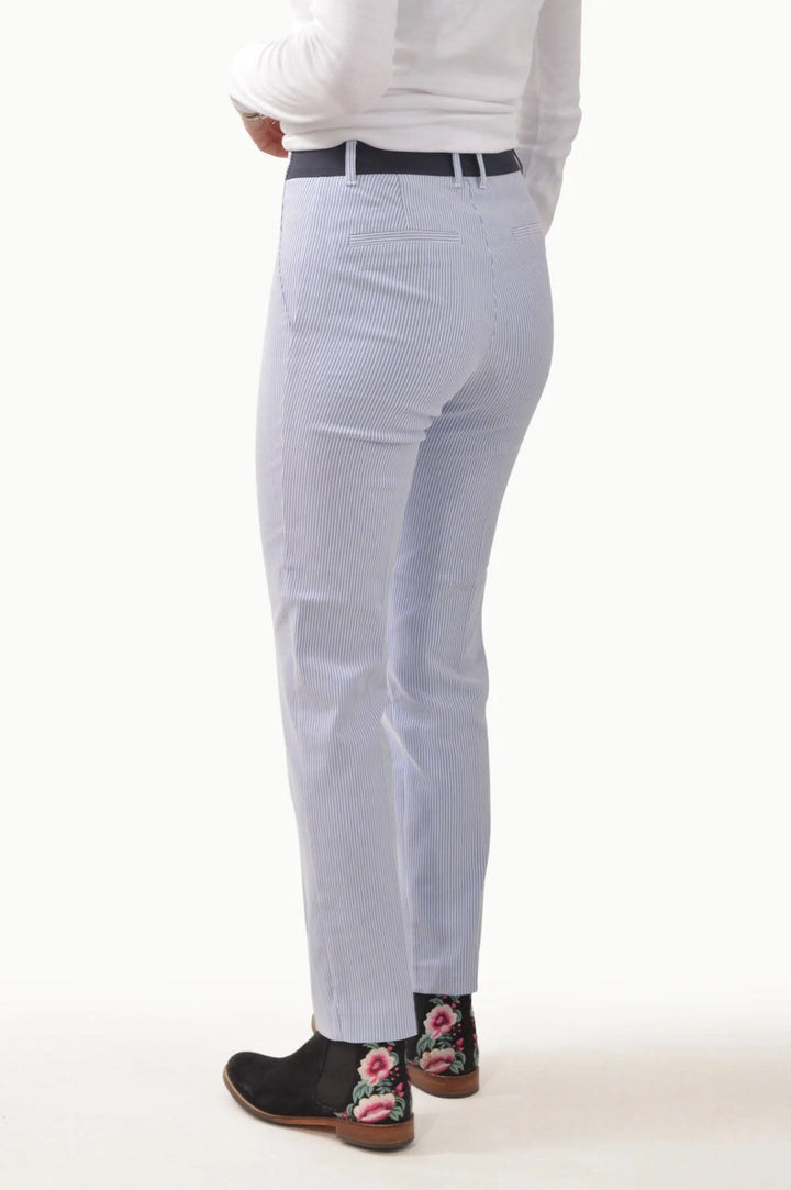 A stylish choice for the summer months, these trousers from Gallery feature a classic blue stripe design. A sophisticated choice, these structured trousers have a crease to the front and back and taper slightly to the ankle.