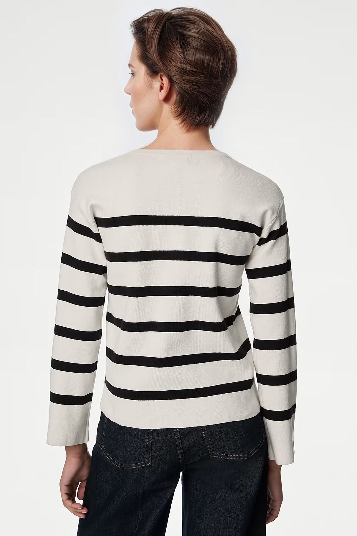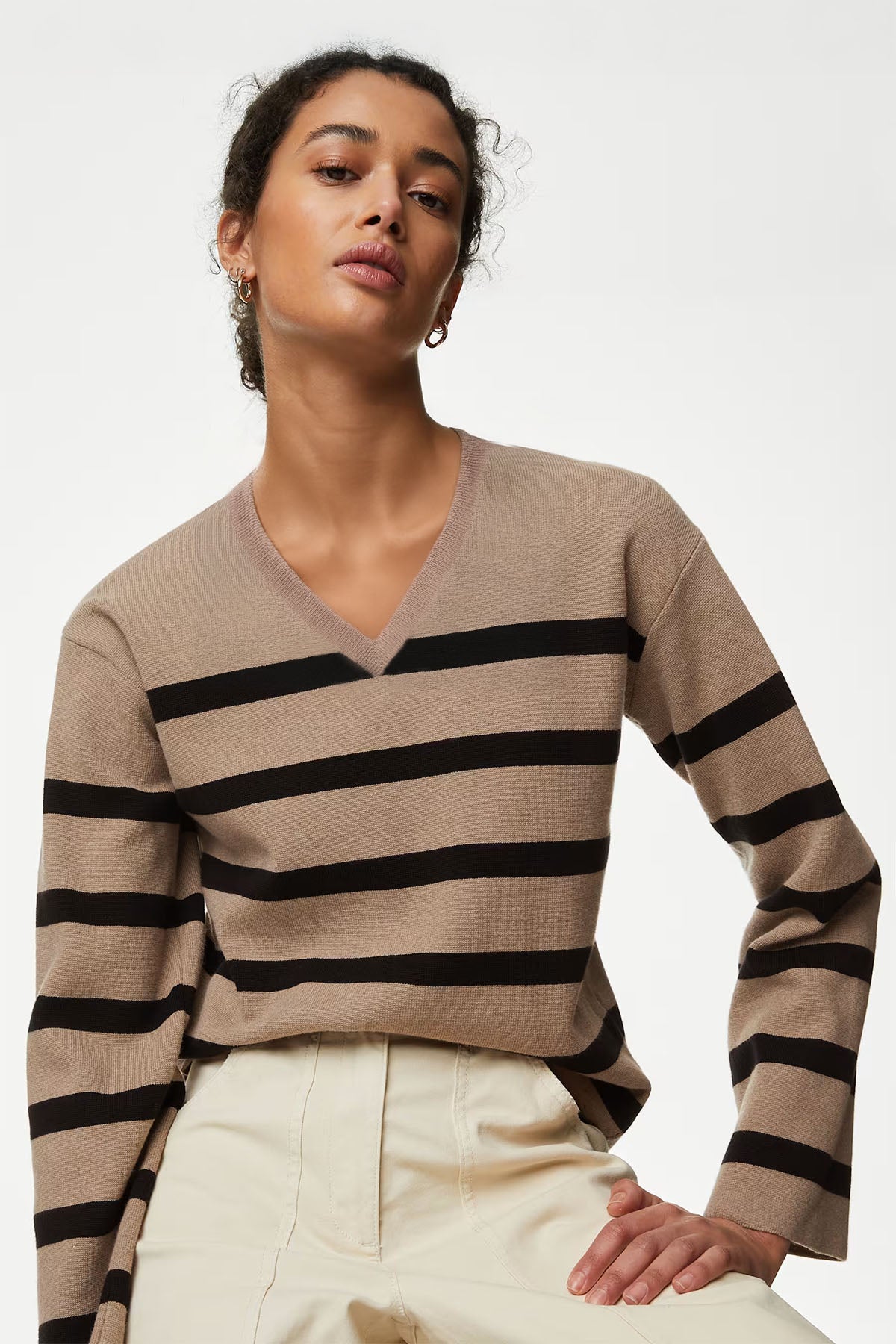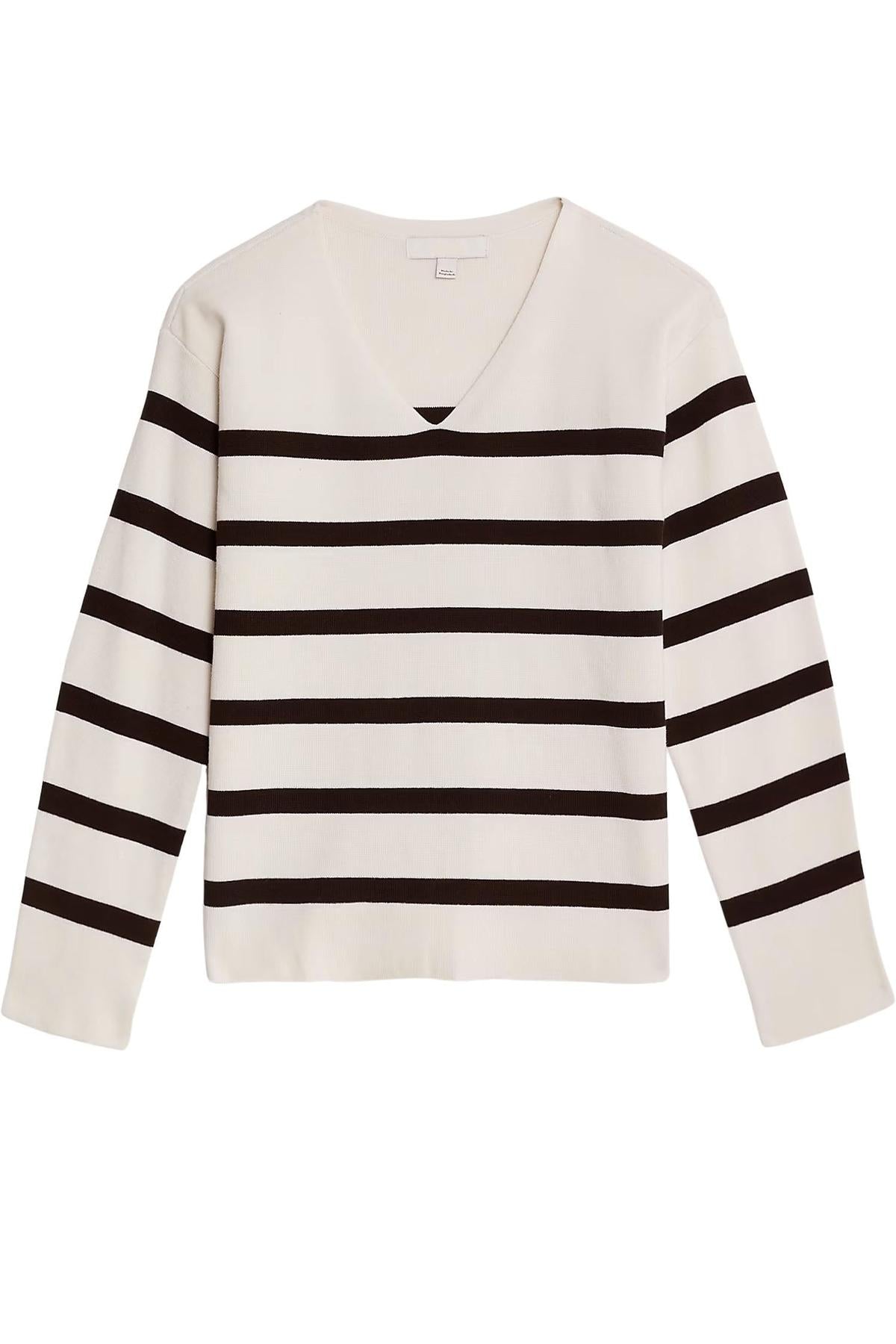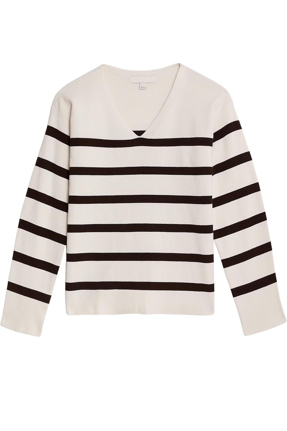 This cotton-rich jumper is a versatile addition to your knitwear collection. It's designed in a regular fit, with long sleeves and a flattering v-neckline. Ribbed trims provide a neat finish to the timeless striped piece.