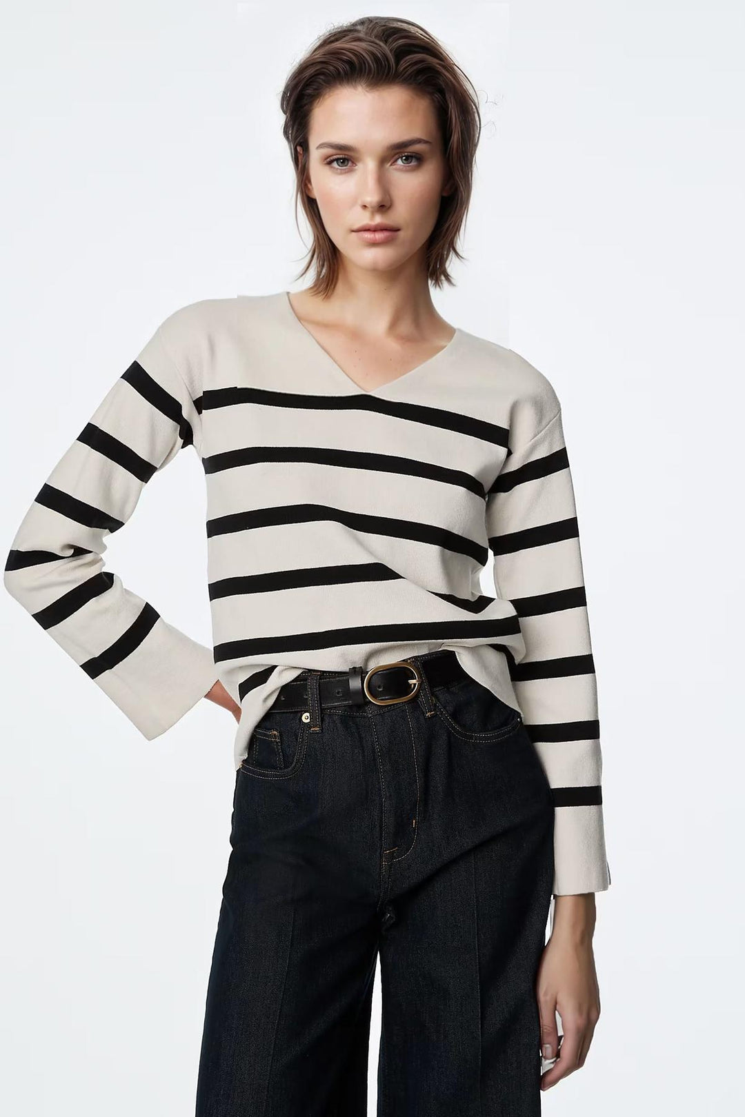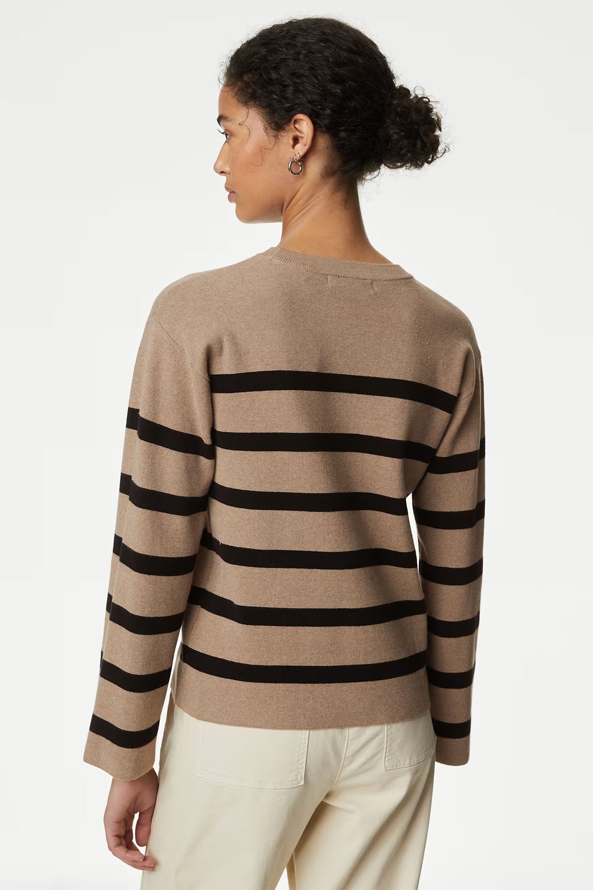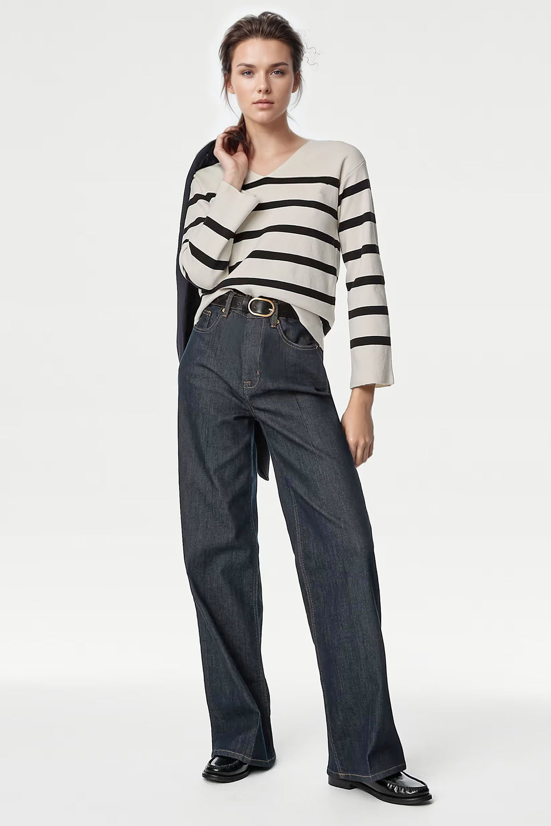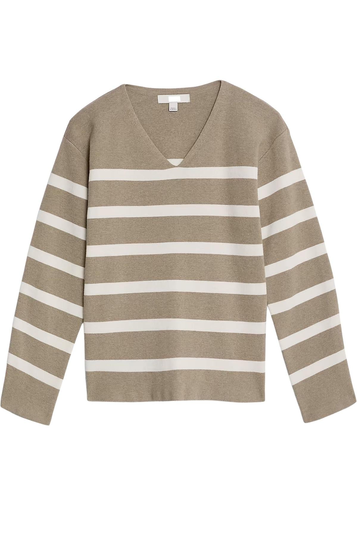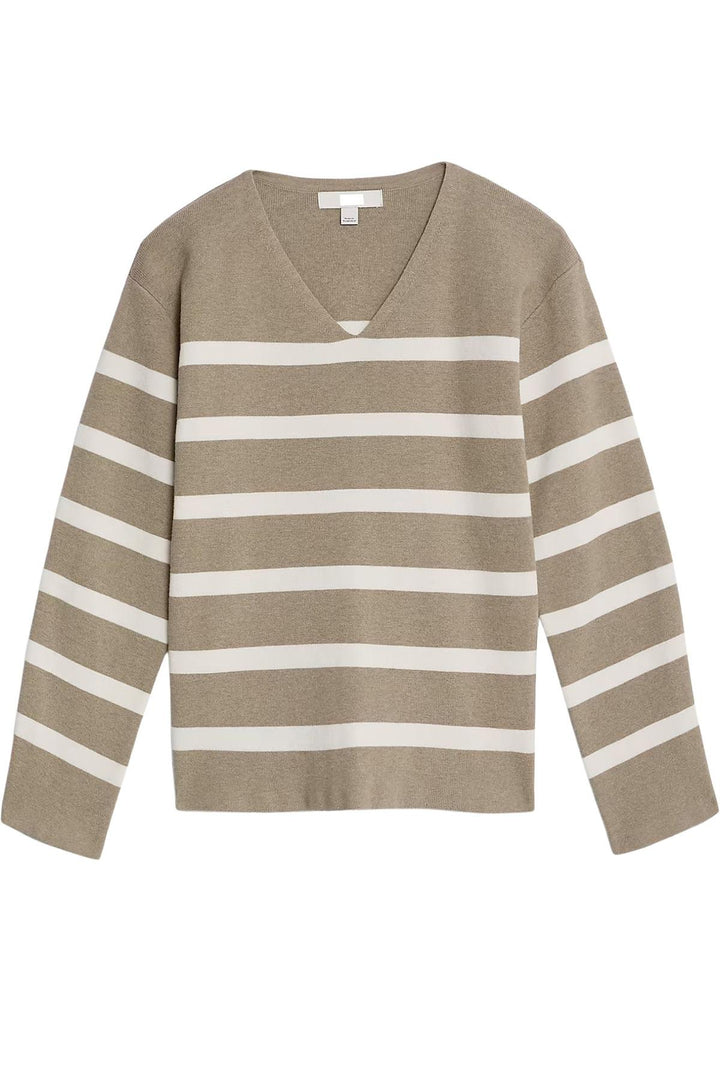 This cotton-rich jumper is a versatile addition to your knitwear collection. It's designed in a regular fit, with long sleeves and a flattering v-neckline. Ribbed trims provide a neat finish to the timeless striped piece.