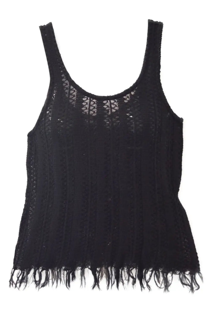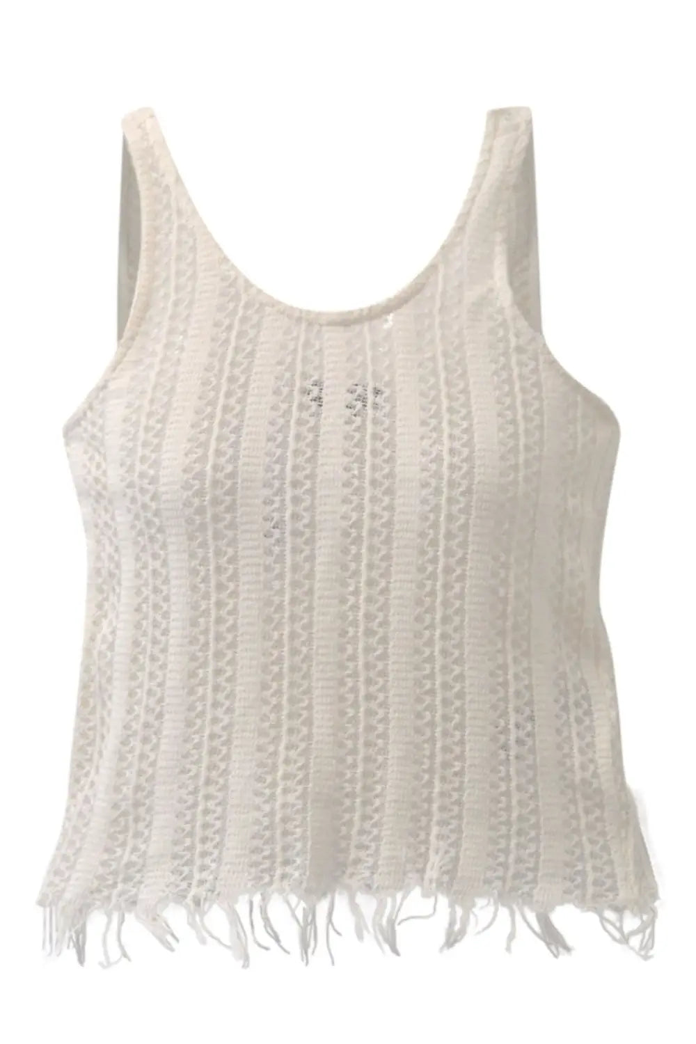 Crochet Vest Crop Top with Tassle Hem and burnout stripe.