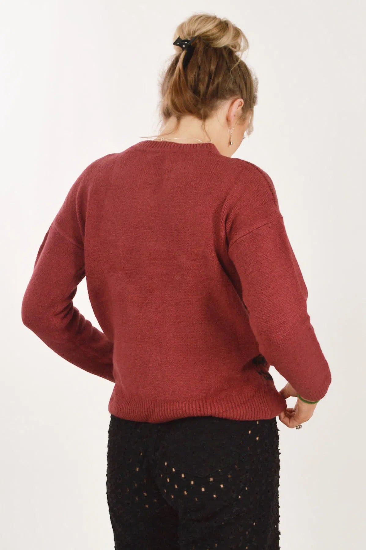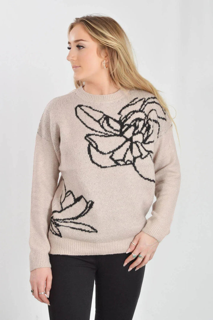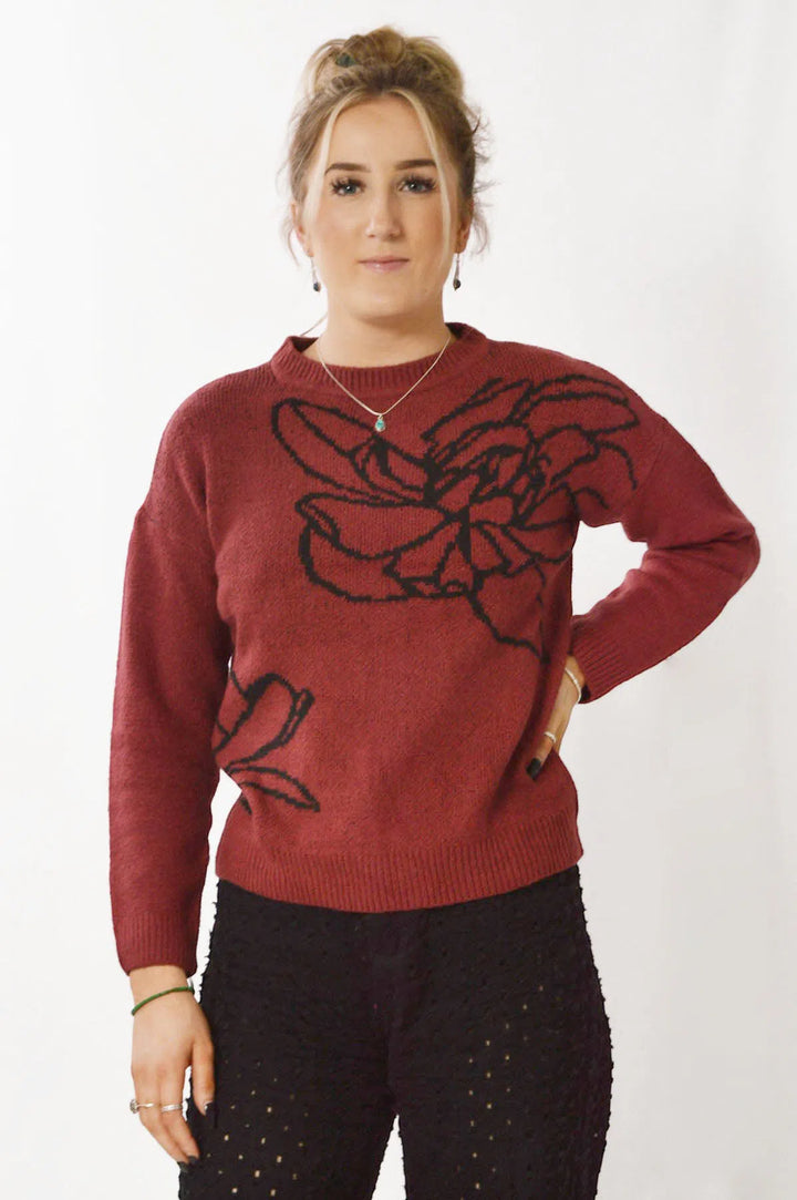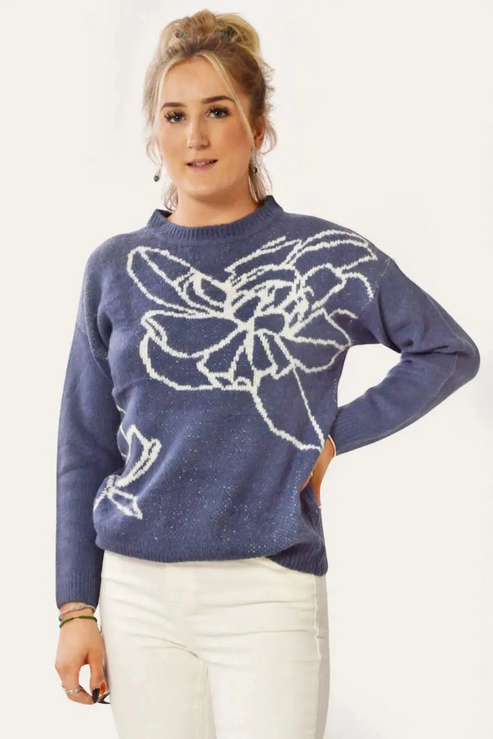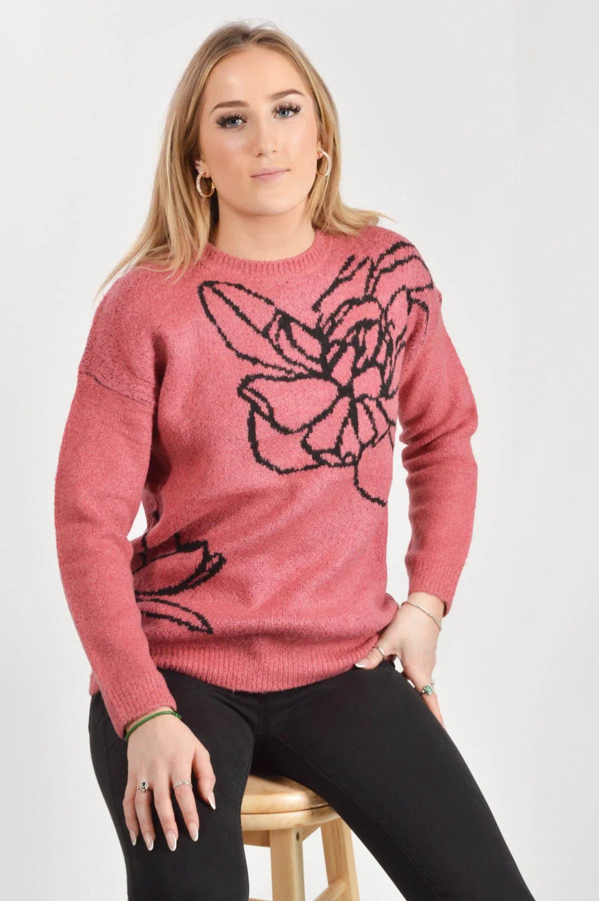 Cosy up in this stylish jumper when the weather takes a cold turn. With a bold linear floral design in a choice of five great colours.