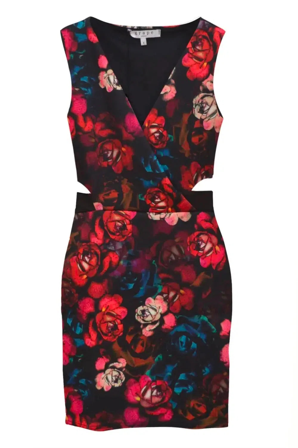 Grape Floral Cut Out Scuba Dress Burgundy/Pink / 4
