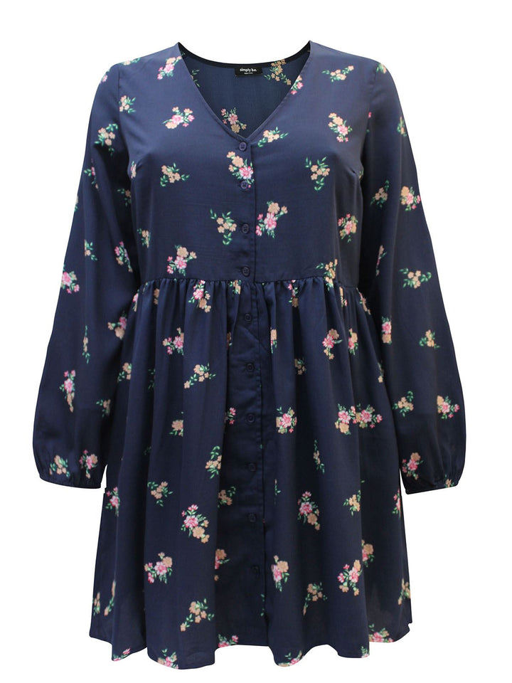 Update your wardrobe this season with this gorgeous smock dress! In a fabulous floral print, this dress features a v-neckline and long sleeves
