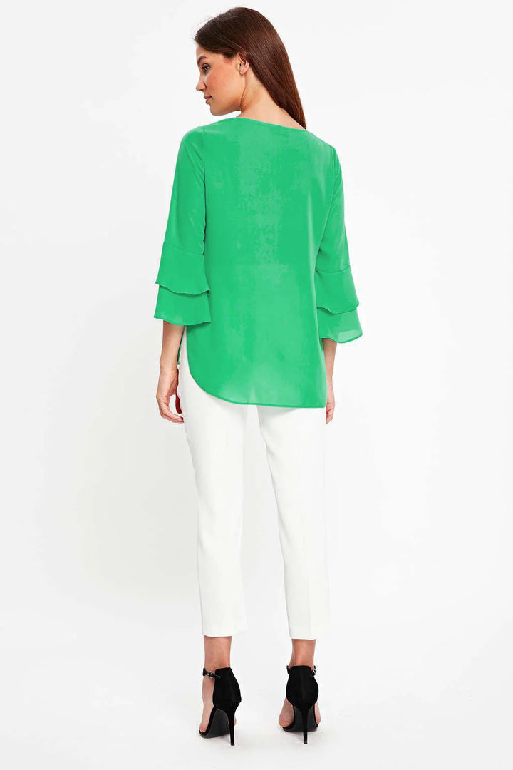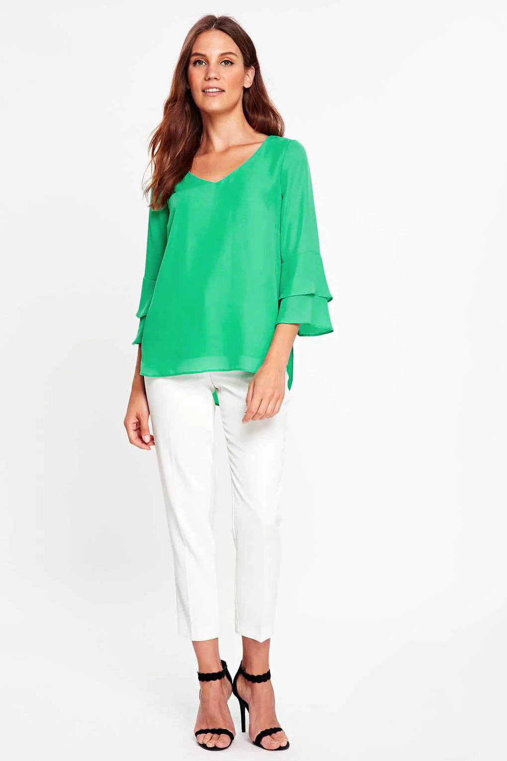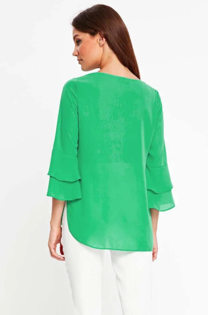Pretty Double Flute Sleeve with V Neckline and Flattering Swing Shaping