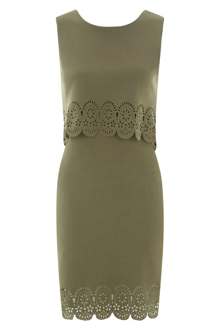 Double Layered Top, Fitted Bodycon Cut, Laser Cut Lace Effect Scallop Edging