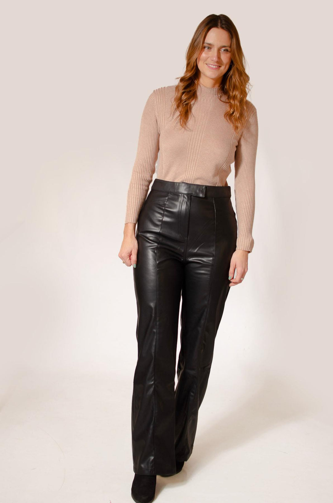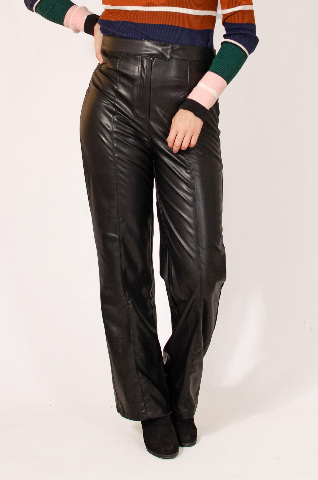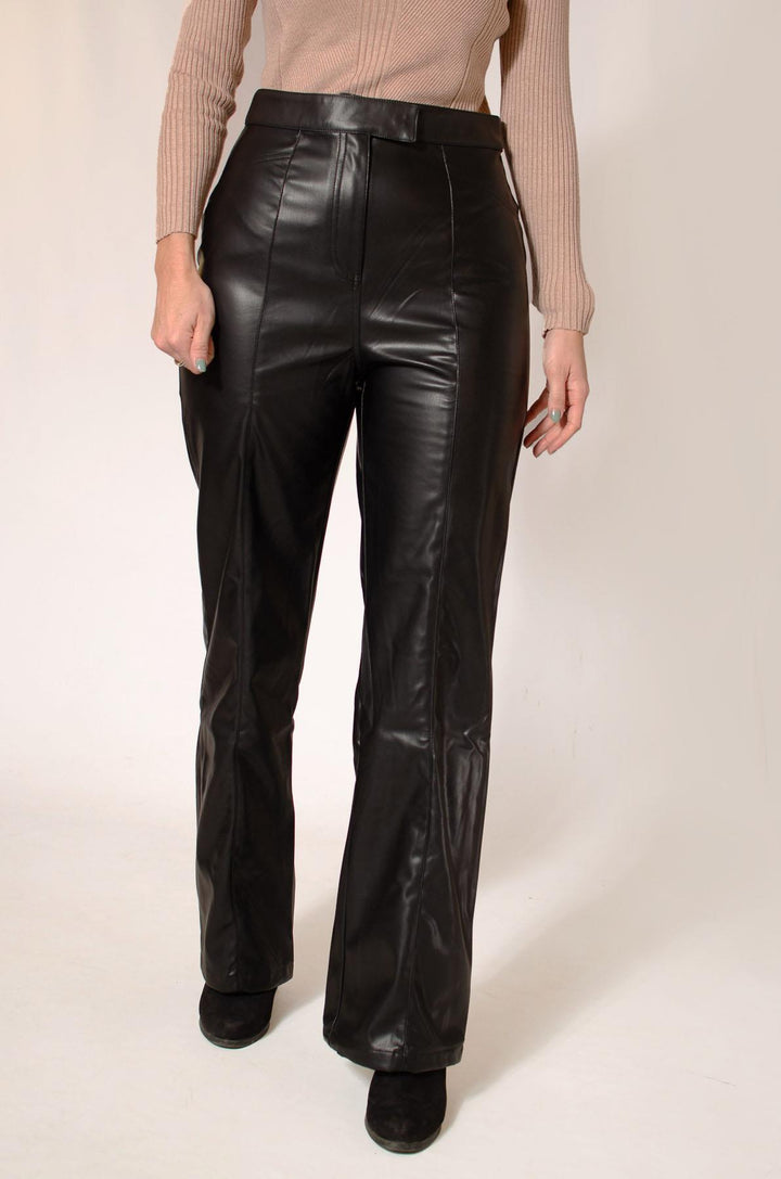 High Rise, tailored wide leg trouser made from soft faux leather. The perfect fit to flatter your figure.
