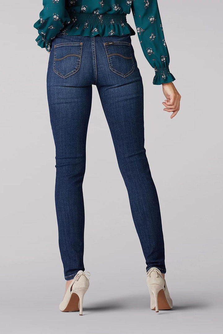 Mid rise, slim fit with pull on elastic waistband, Functional watch and back pockets, front scoop pockets and fly are faux. Featuring fabric that stretches, sculpts and holds