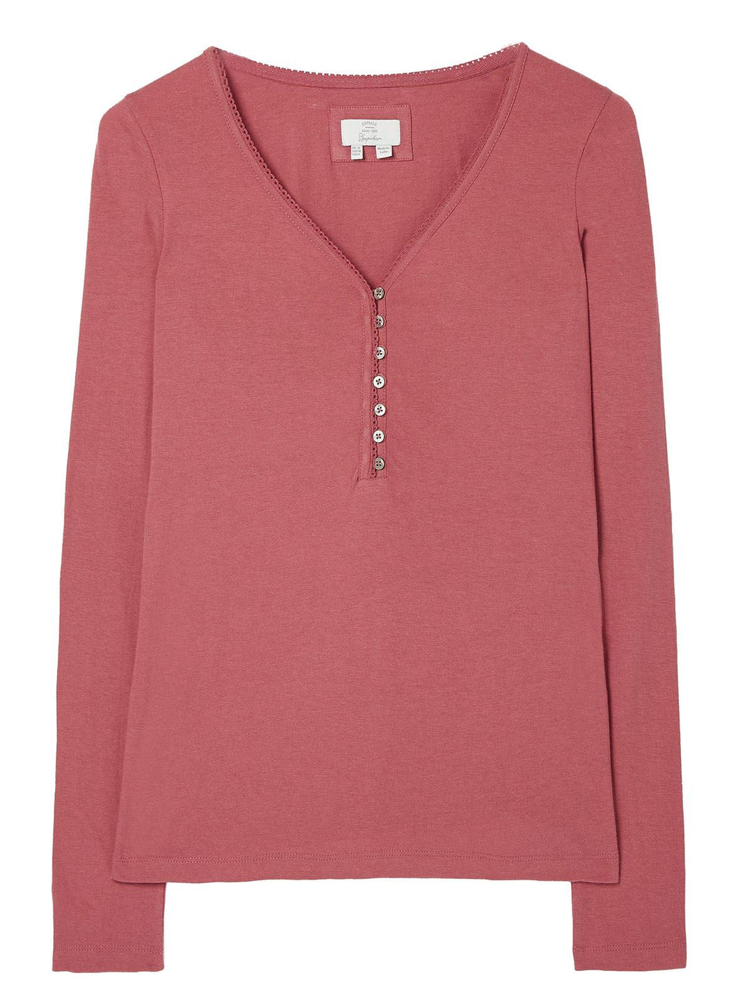 Supersoft, snug and perfect for everything from lazy days to cosy nights, this long sleeve henley features beautiful trims for a pretty look. It's made with a supersoft and breathable cotton and comes in a comfortable fit.