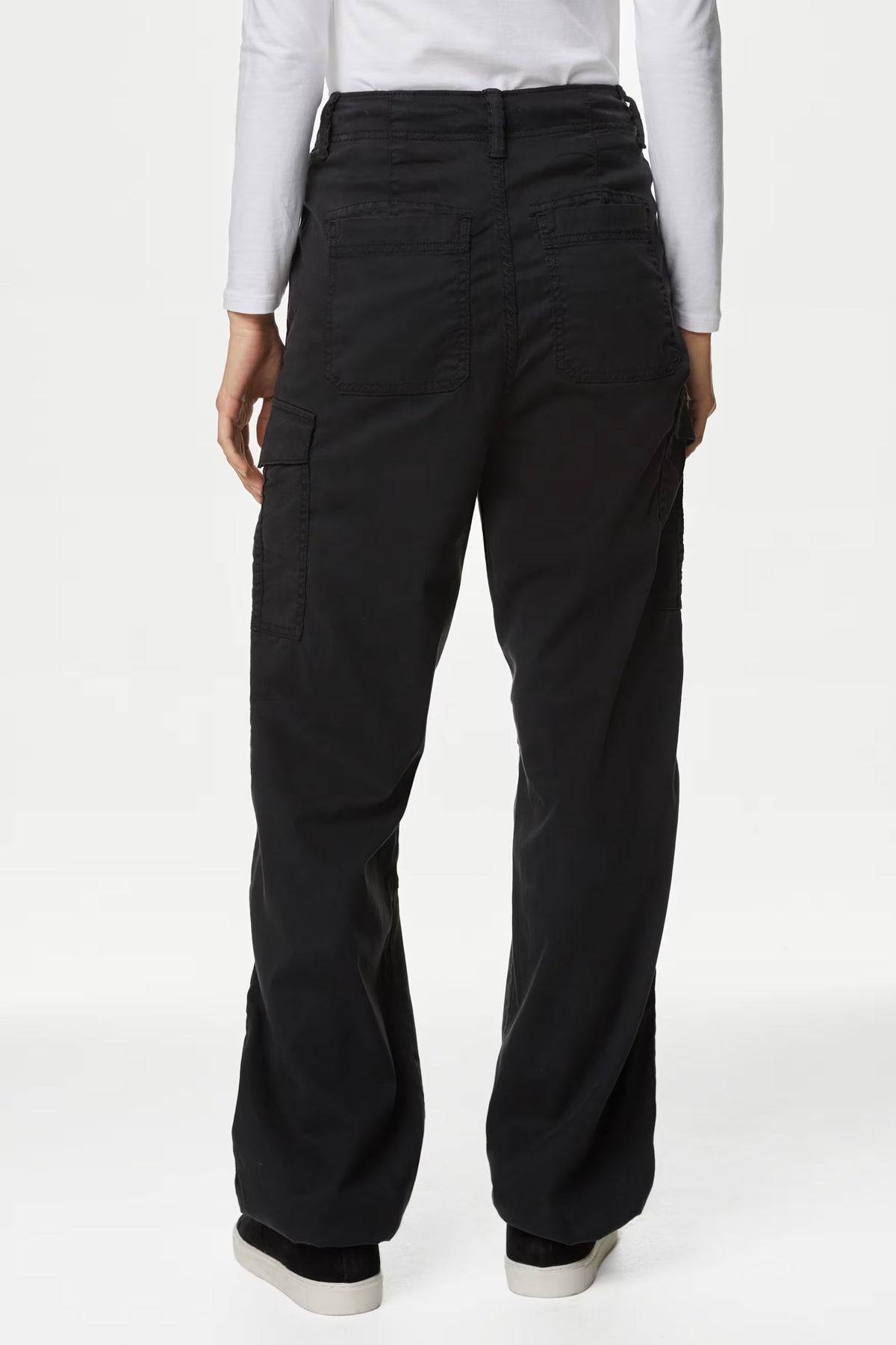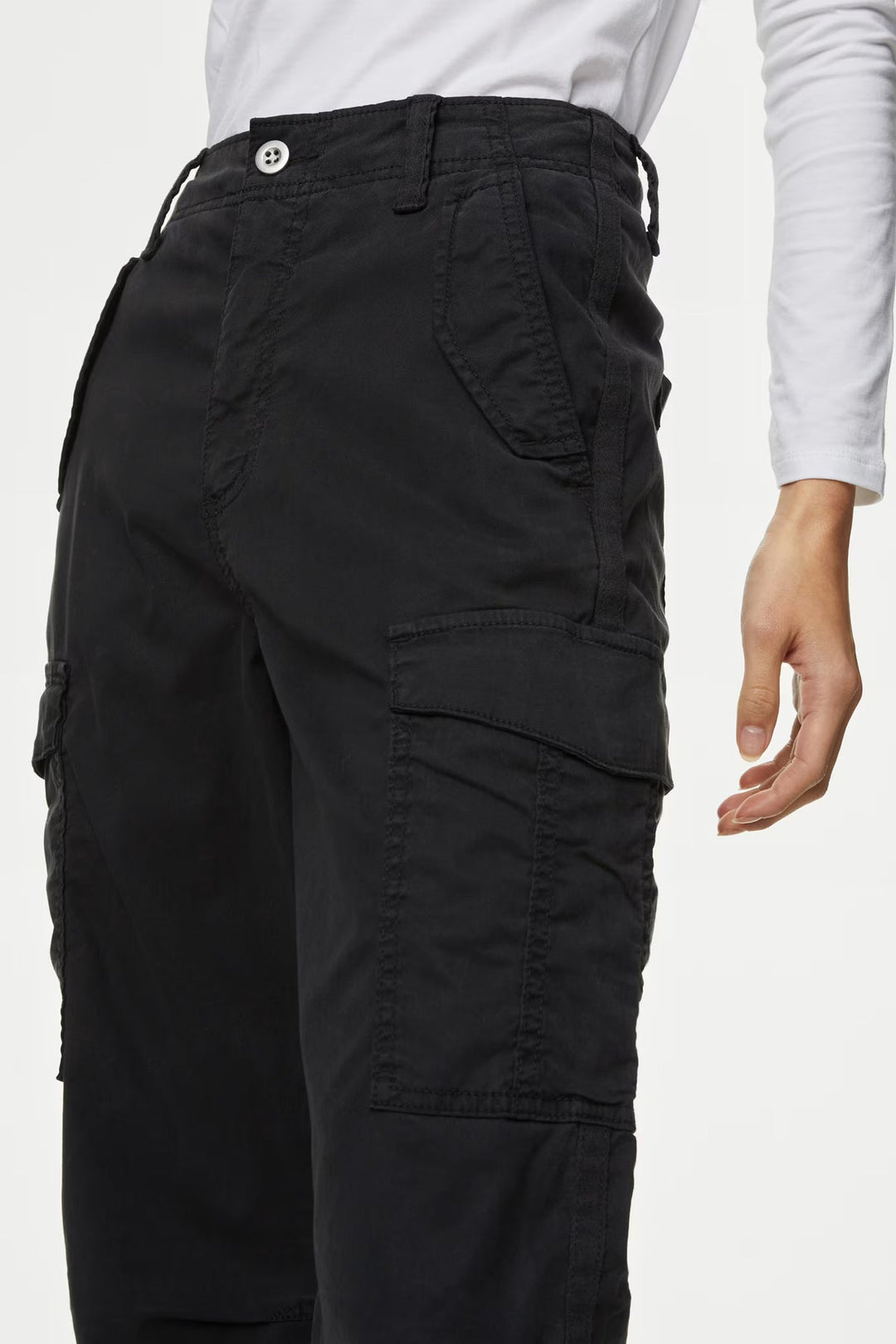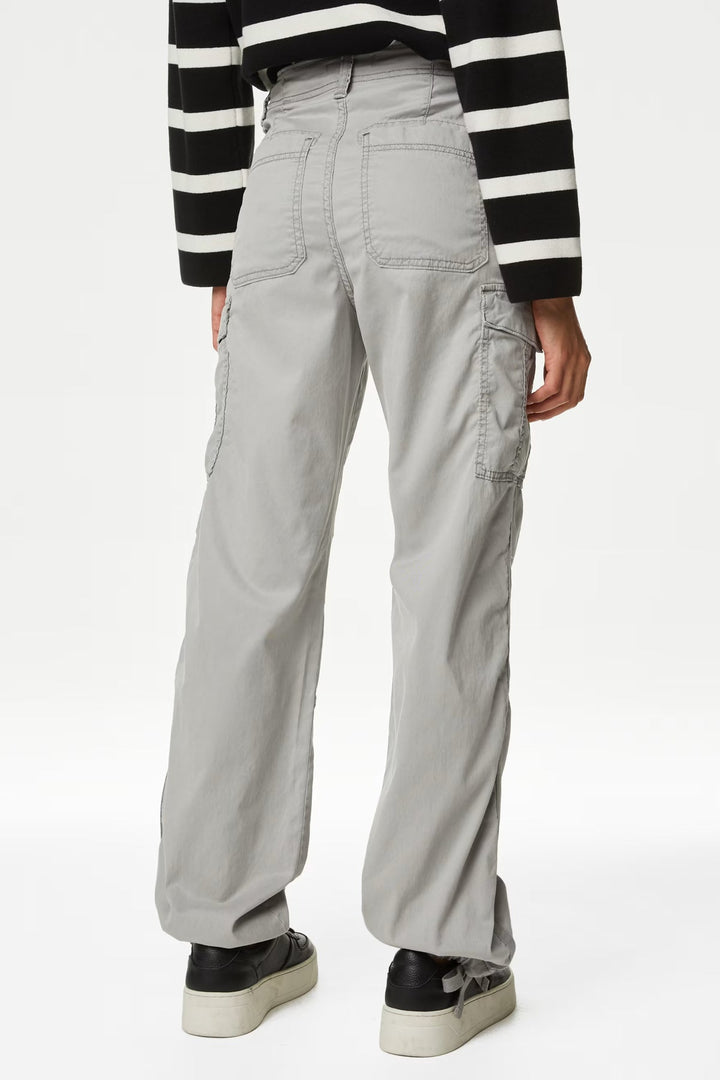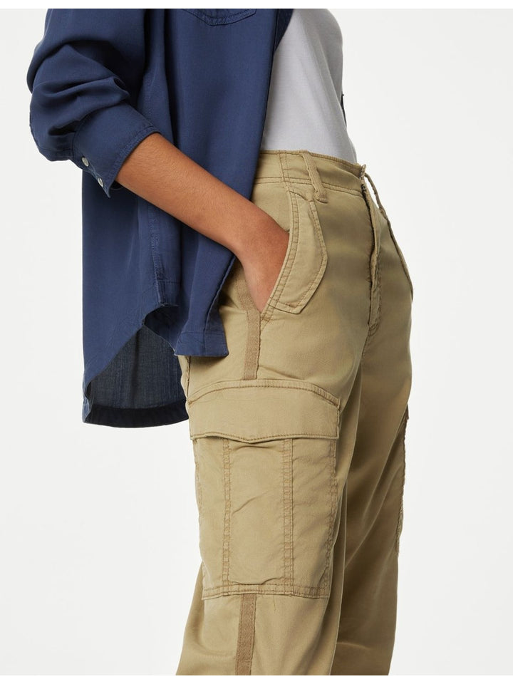 These lyocell-rich cargo trousers are a versatile addition to your casual wardrobe. They're made in a straight fit, with a flattering high waist. Added stretch in the fabric ensures a comfortable feel. The trousers are complete with two side pockets and two cargo pockets on the legs, finished with tie cuff ankle.
