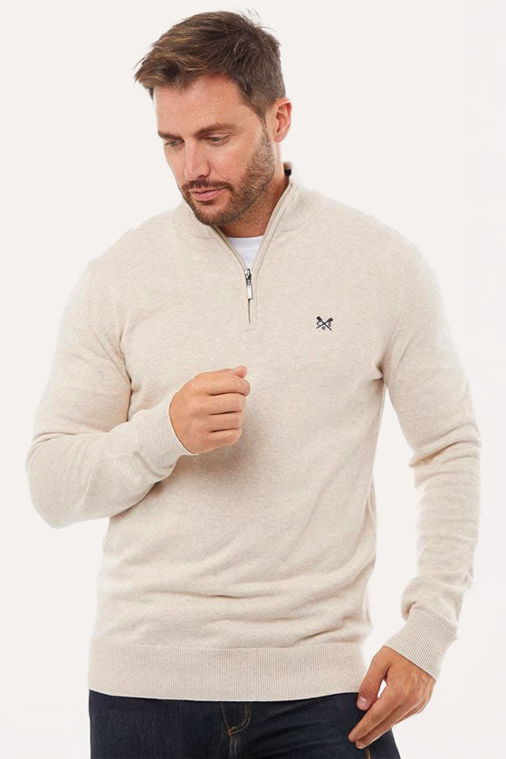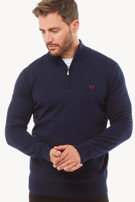 Made from pure cotton, this sweater is perfect for year-round wear. Featuring a zip neck with contrast stripes inside neckline, and an embroidered crew oars logo on the chest.  This sweater exudes sophistication and luxury.