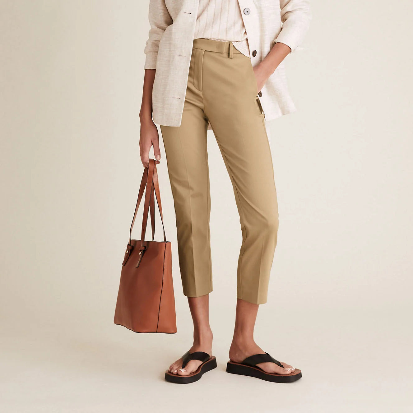 M&S Mia Slim Fit 7/8 Length Trousers Beige / 6 / Reg
