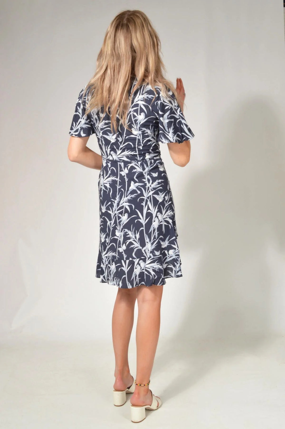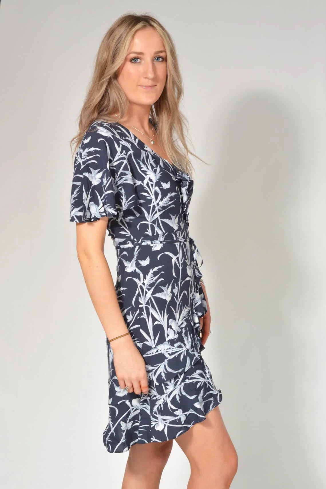 Framed by a V-neckline and flattering short sleeve cut, this stunning floral print dress from Oasis falls just above the knee and is styled in an on-trend wrap shape with pretty subtle frilled ruffle edging - it looks great with a biker, it looks great on its own.