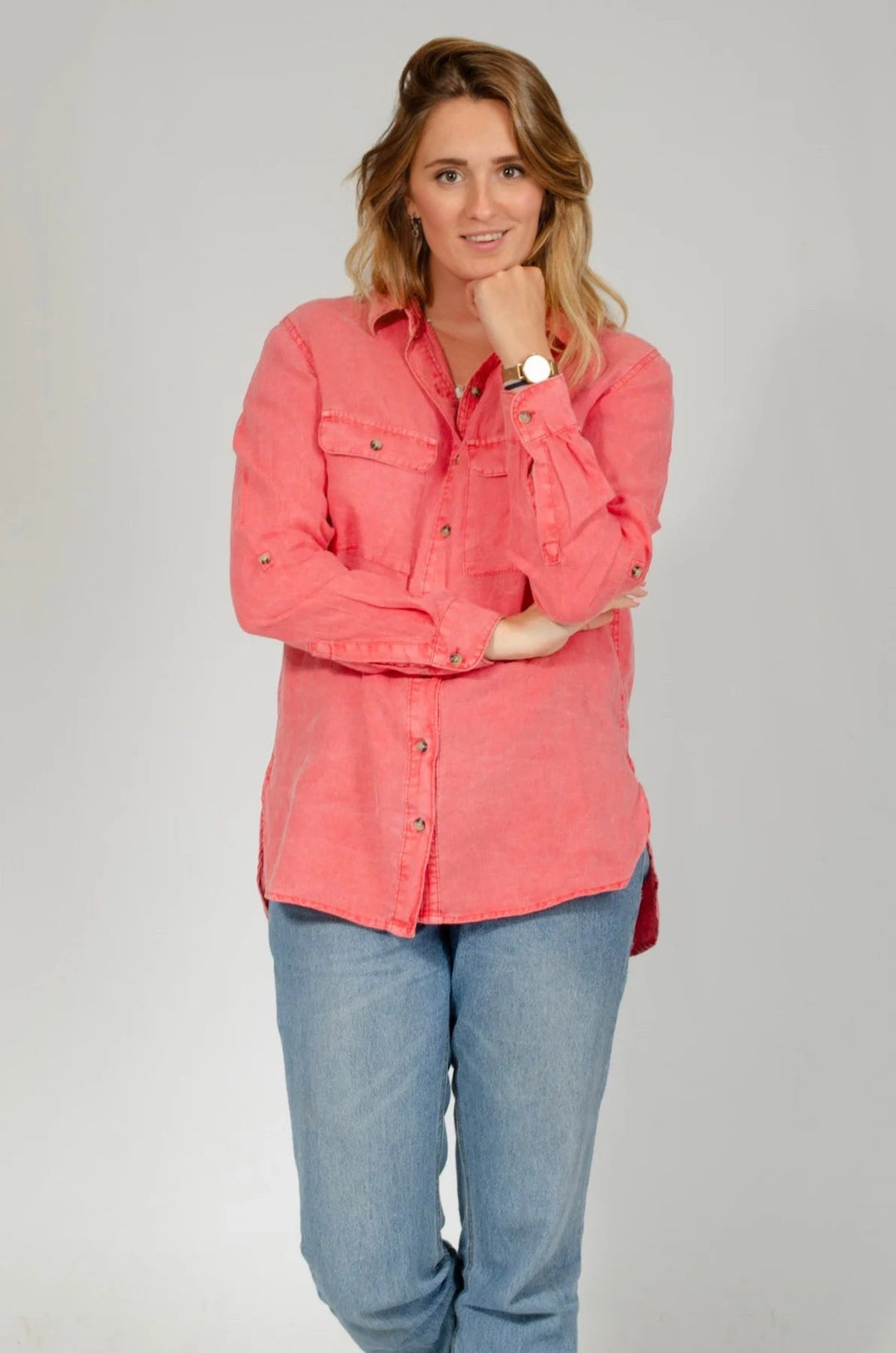 There's nothing more chic than a long-sleeved linen shirt. This shirt is cut in an oversized fit, with a classic collared neck. Made from a Winter weight linen, blended with viscose to prevent creasing. Button-through fastening with a two pockets on the chest. As easy-to-wear wardrobe staple that combine classic and contemporary styles.