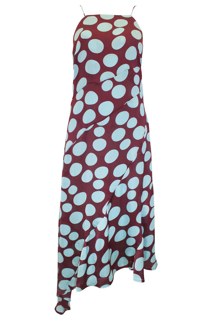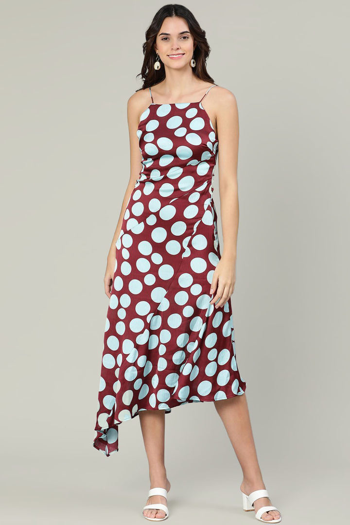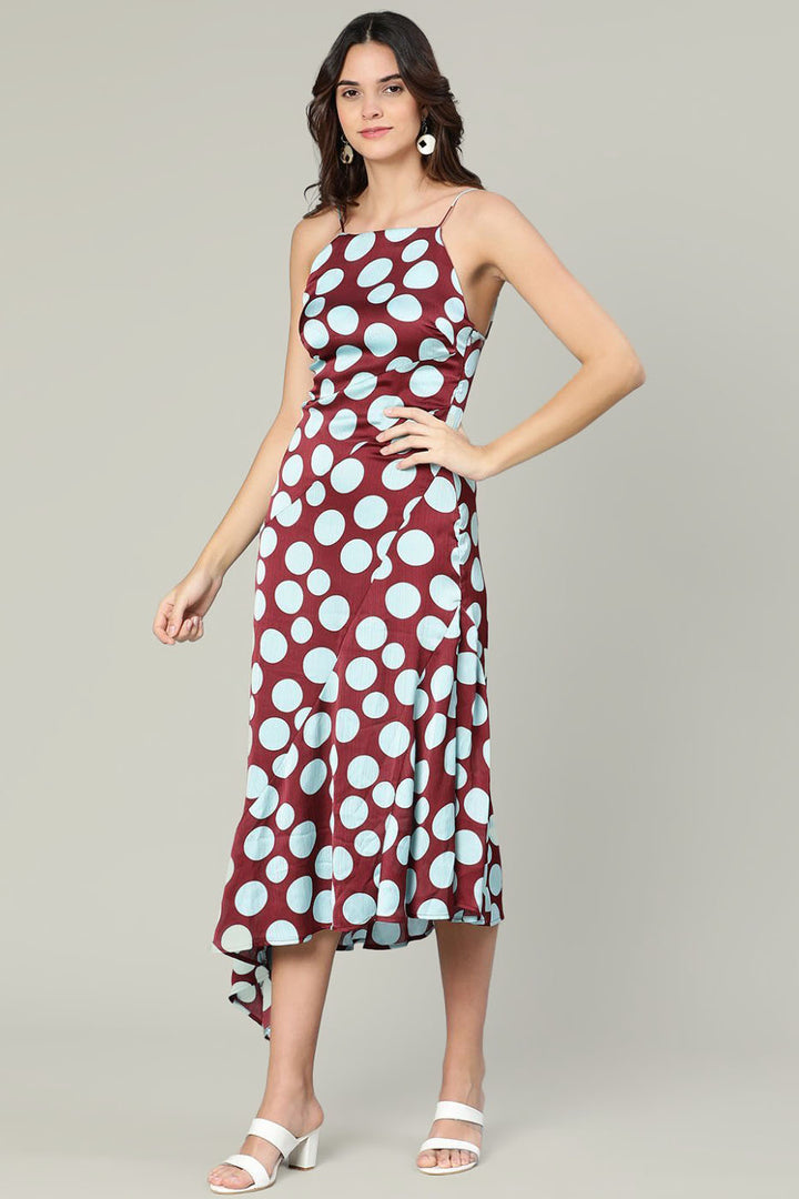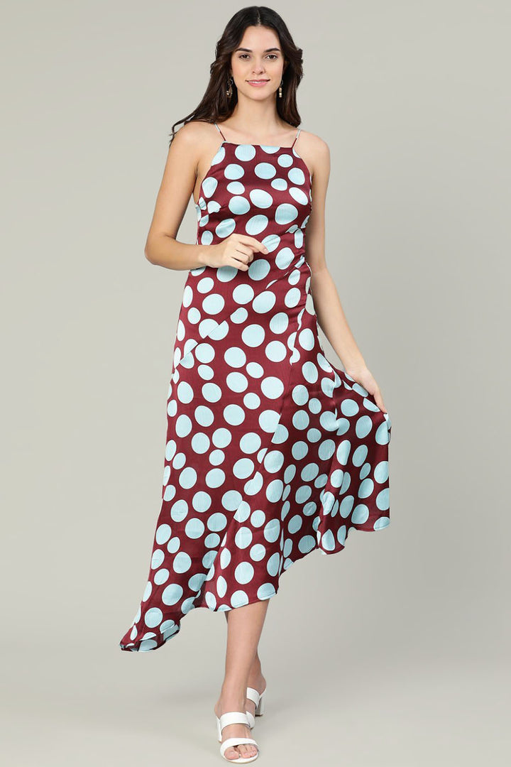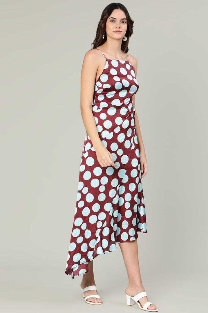 Make a statement in this eye-catching party dress from Oxololoxo. The bold spot design creates instant visual impact. Diagonal tucked seams flatter your figure. Delicate spaghetti straps and sleeveless styling offer a feminine touch perfect for warm weather. The asymmetric hemline with deep frill adds dramatic movement and elegance to this versatile piece. Turn heads wherever you go.