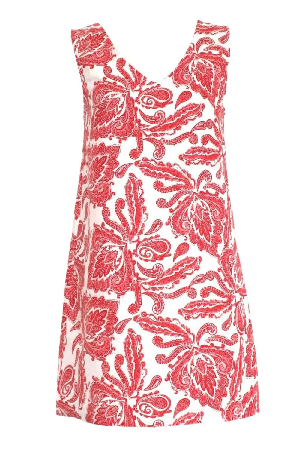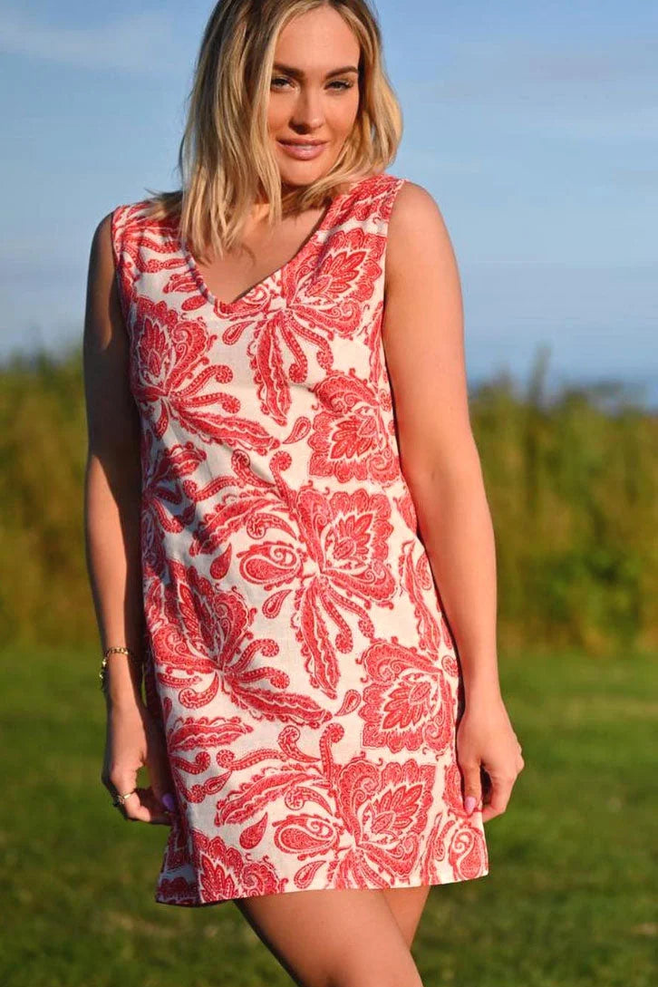 Red Paisley Sleeveless Linen Dress