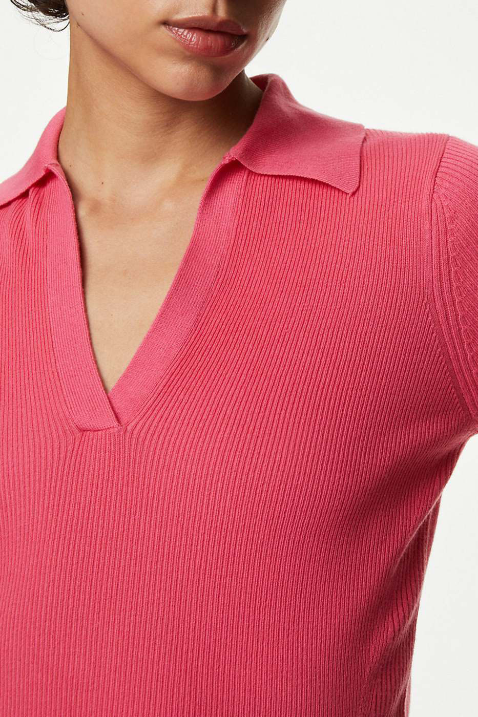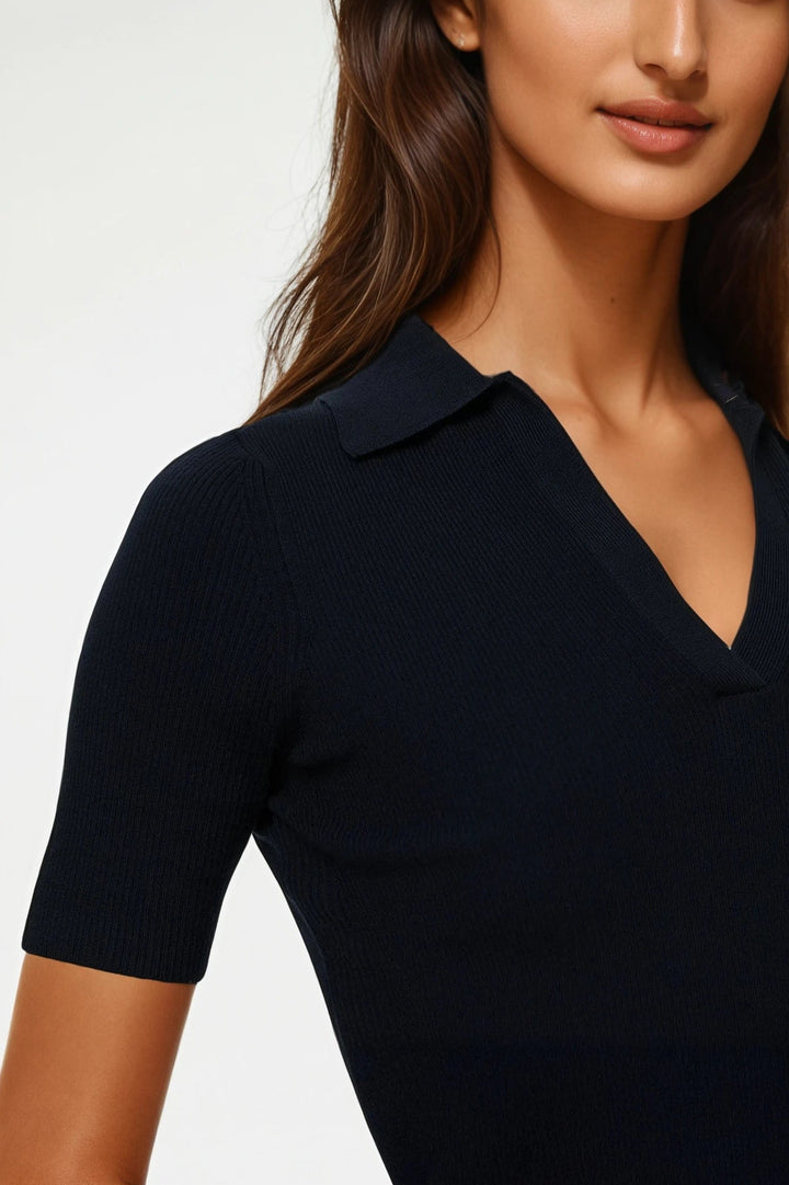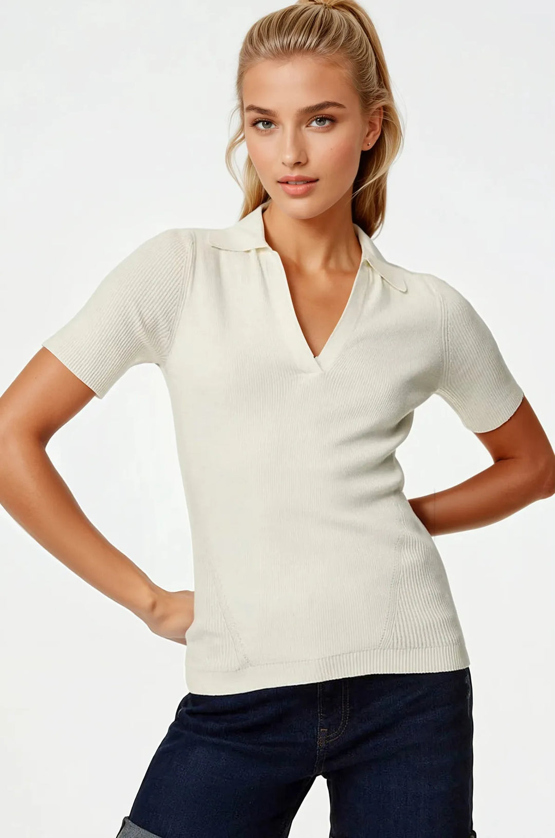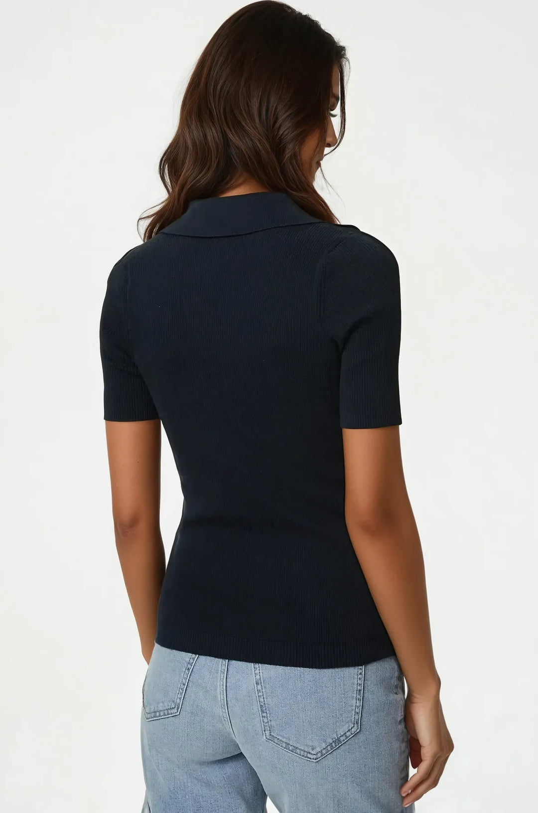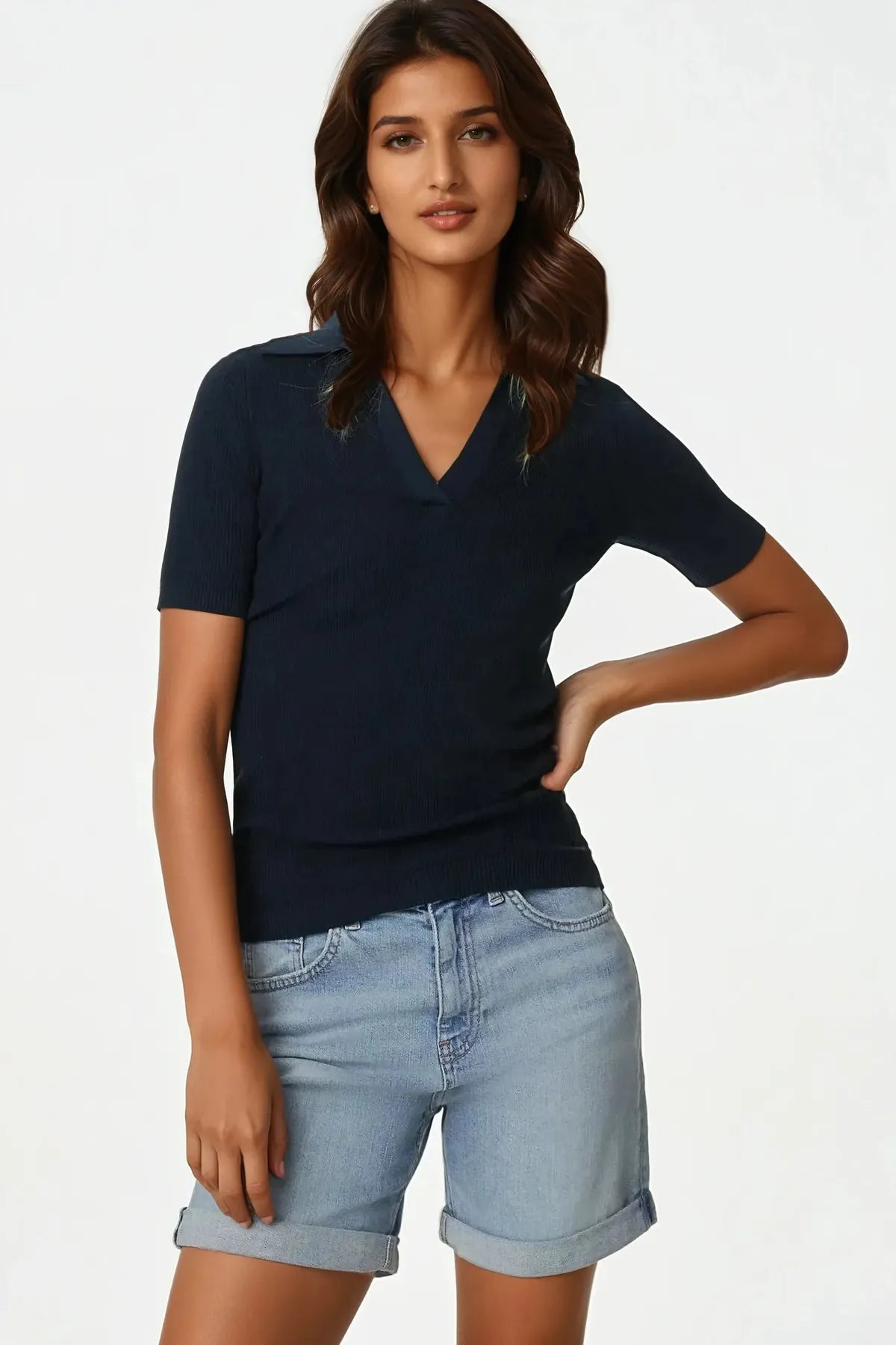 Inspired by the classic polo shirt, this cotton-rich knitted top has a v-neck and an open collar. It's cut to a regular fit, with neat short sleeves. A subtle ribbed texture provides natural stretch and adds character