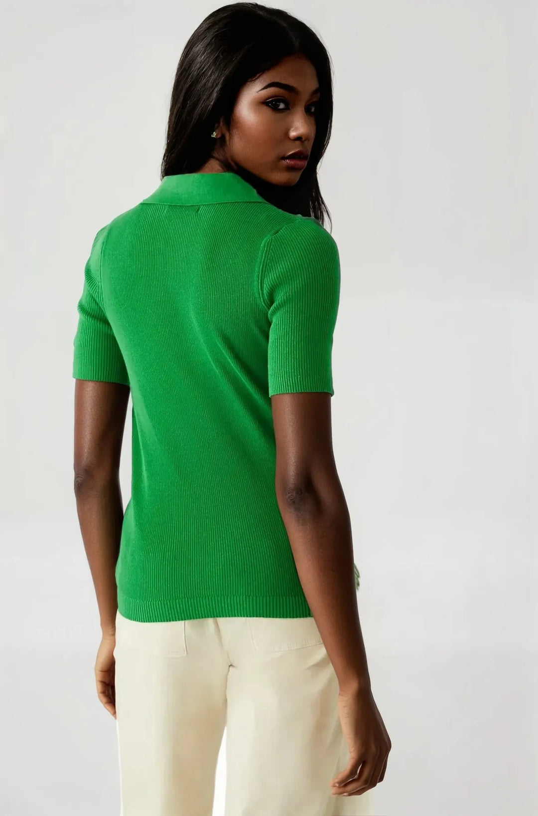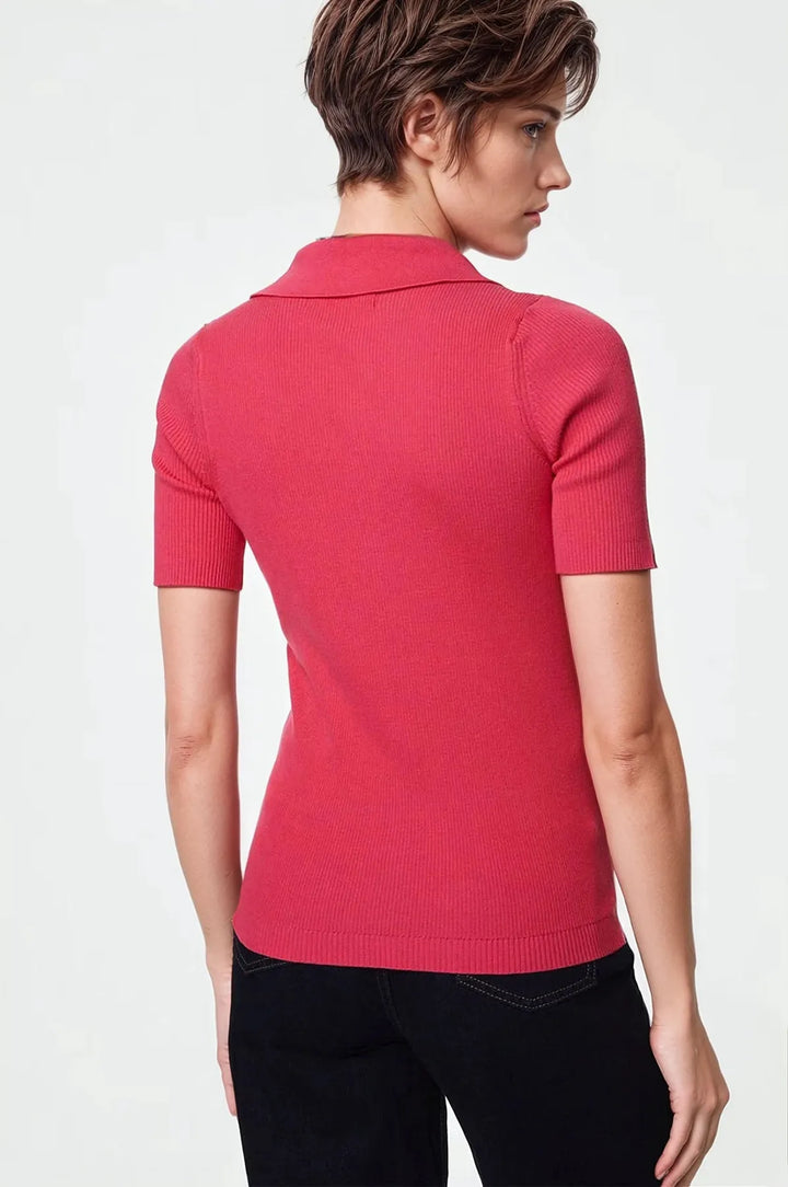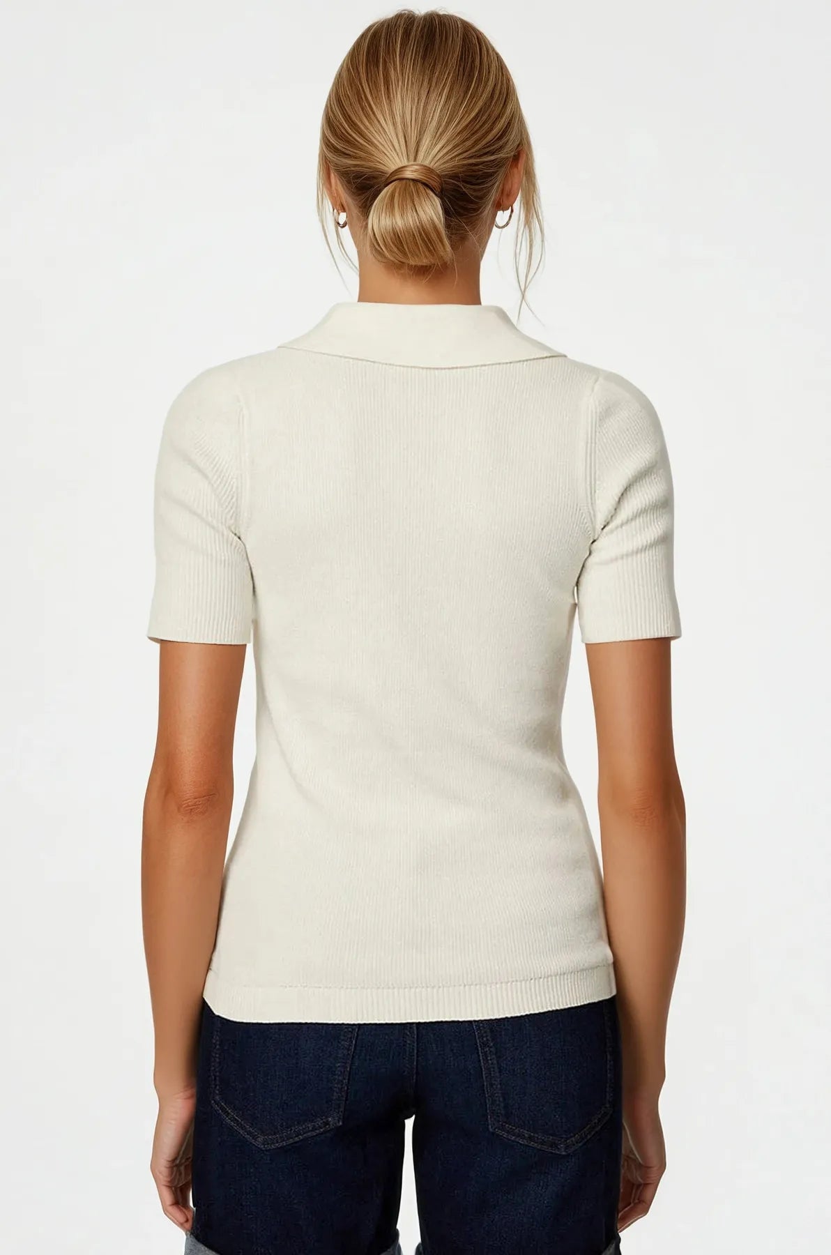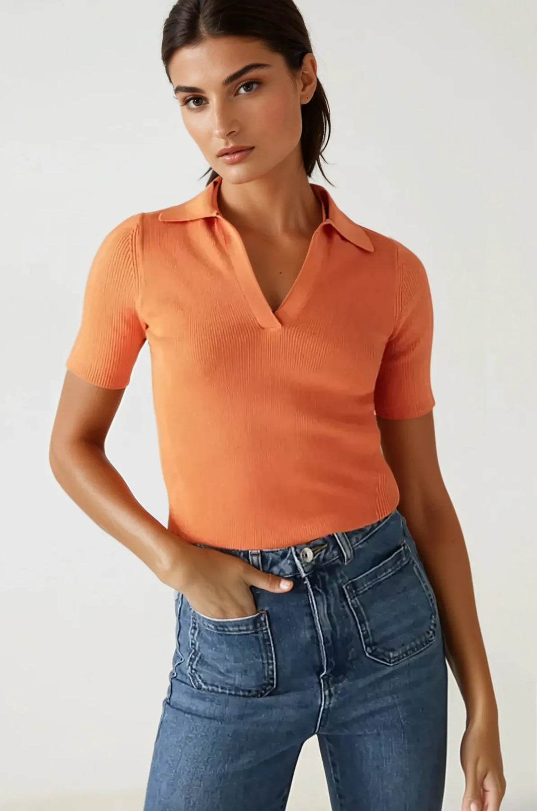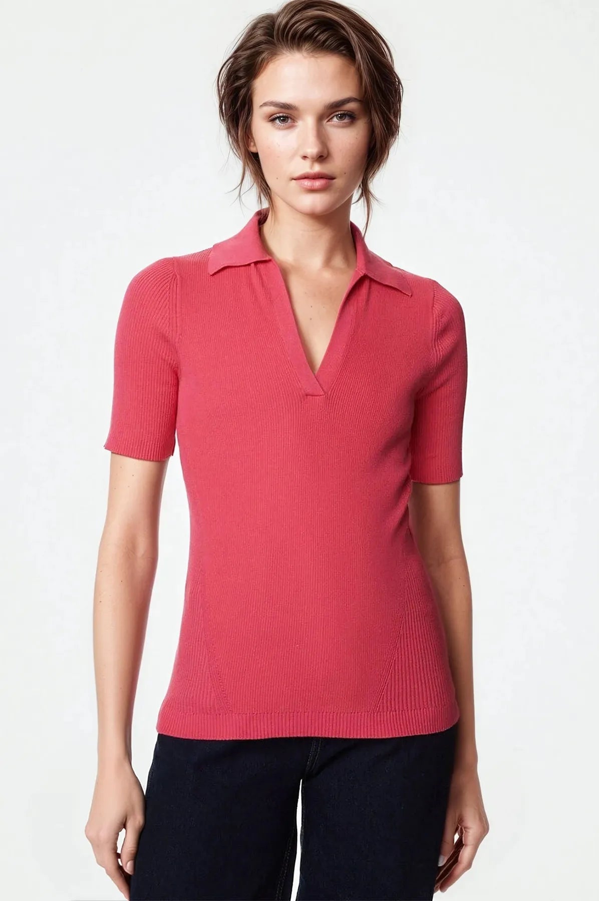 Inspired by the classic polo shirt, this cotton-rich knitted top has a v-neck and an open collar. It's cut to a regular fit, with neat short sleeves. A subtle ribbed texture provides natural stretch and adds character