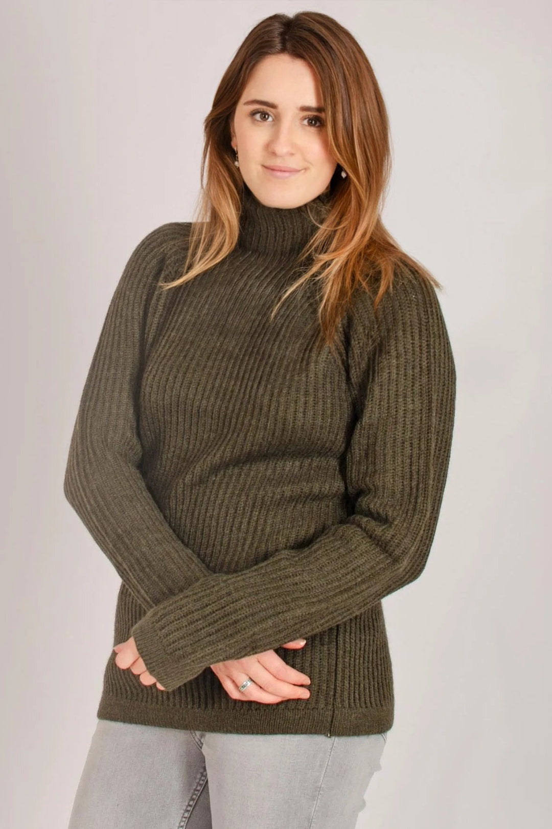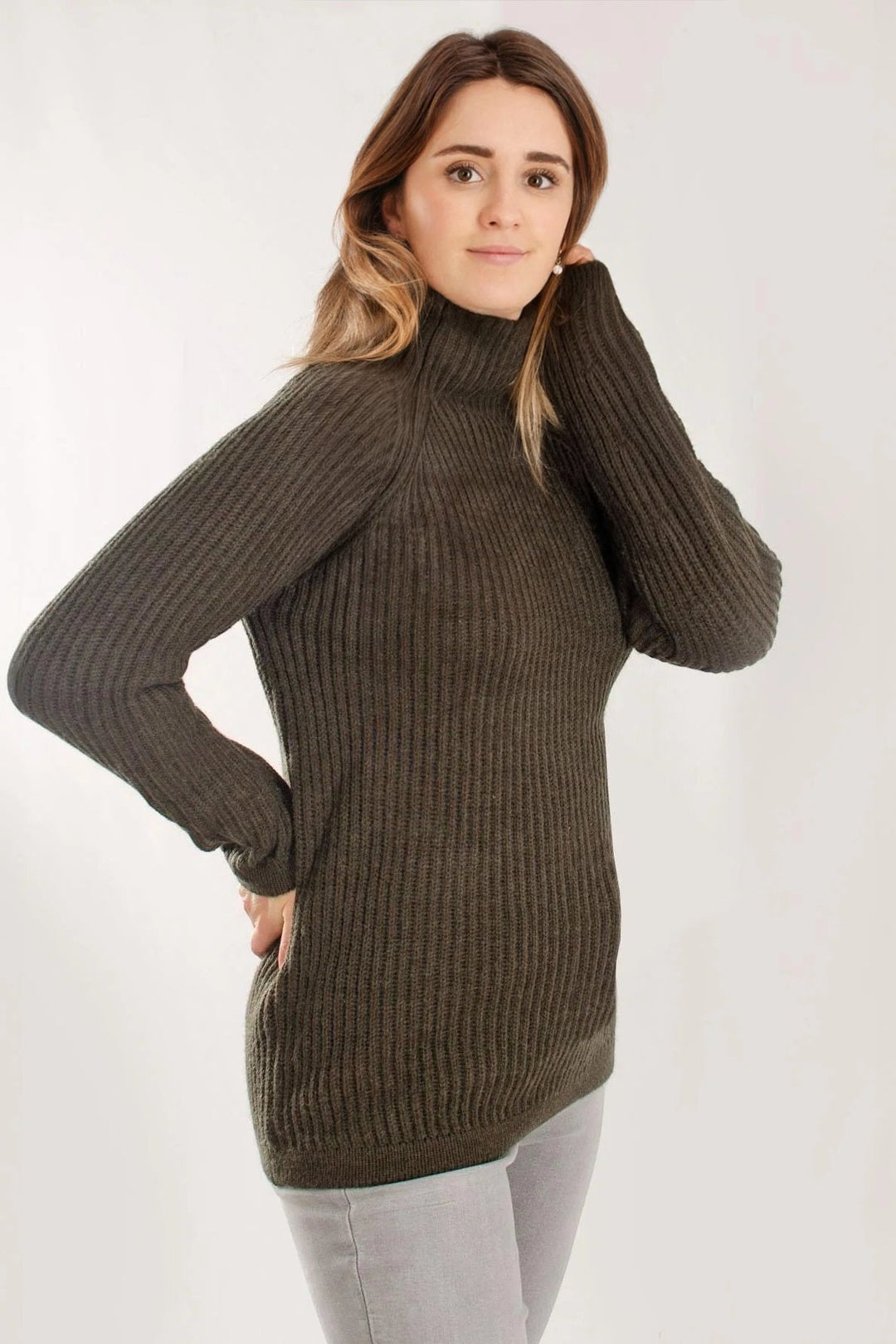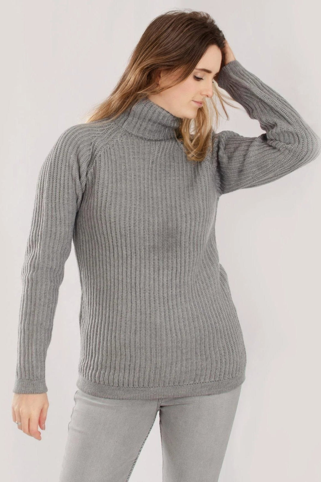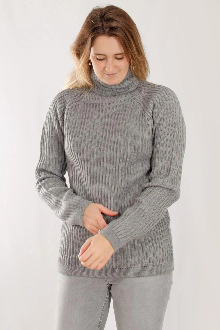 Borrow from the boys with this chunky fisherman's ribbed jumper. The menswear classic gets a feminine overhaul. A marled, slightly textured effect lends further depth to this piece, while a laid-back cut and grown-on high neck make it ideal for layering in cooler weather.