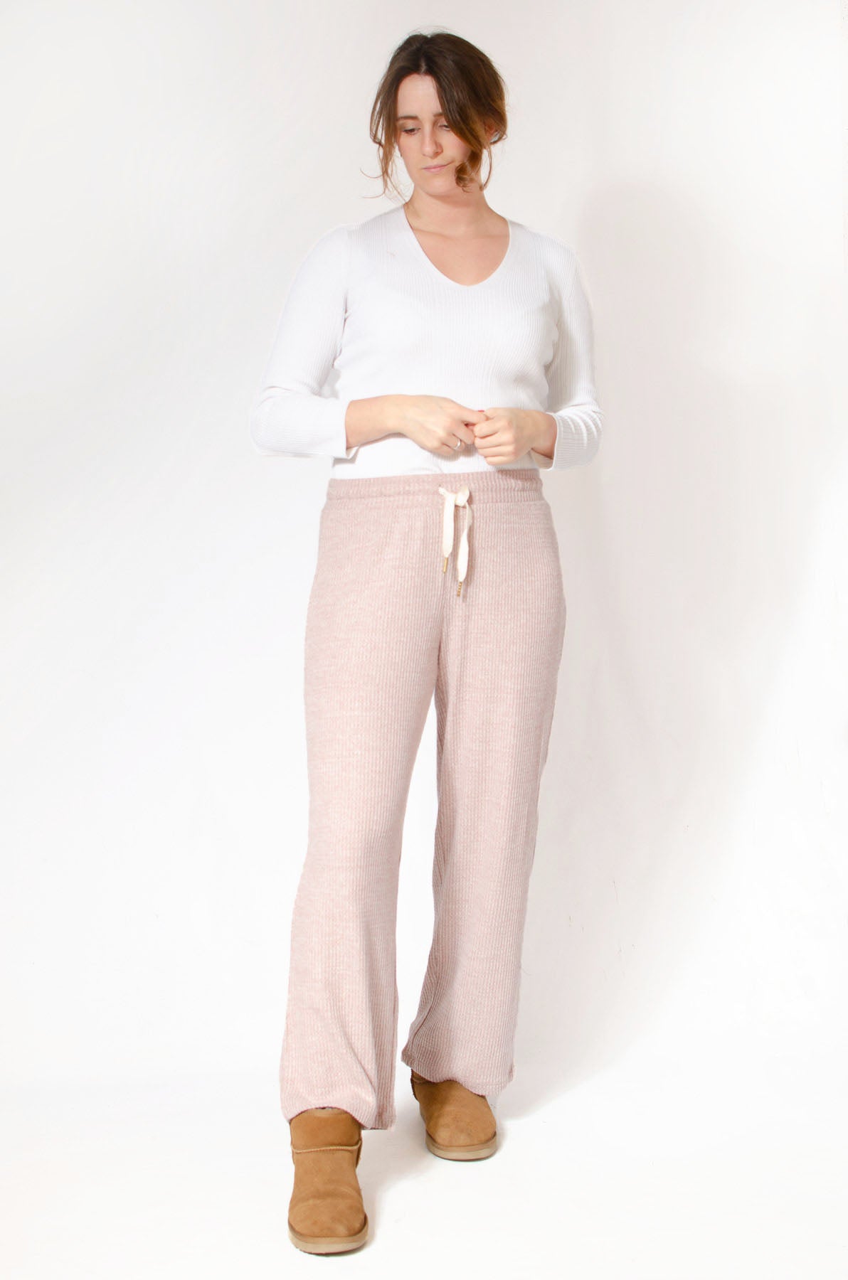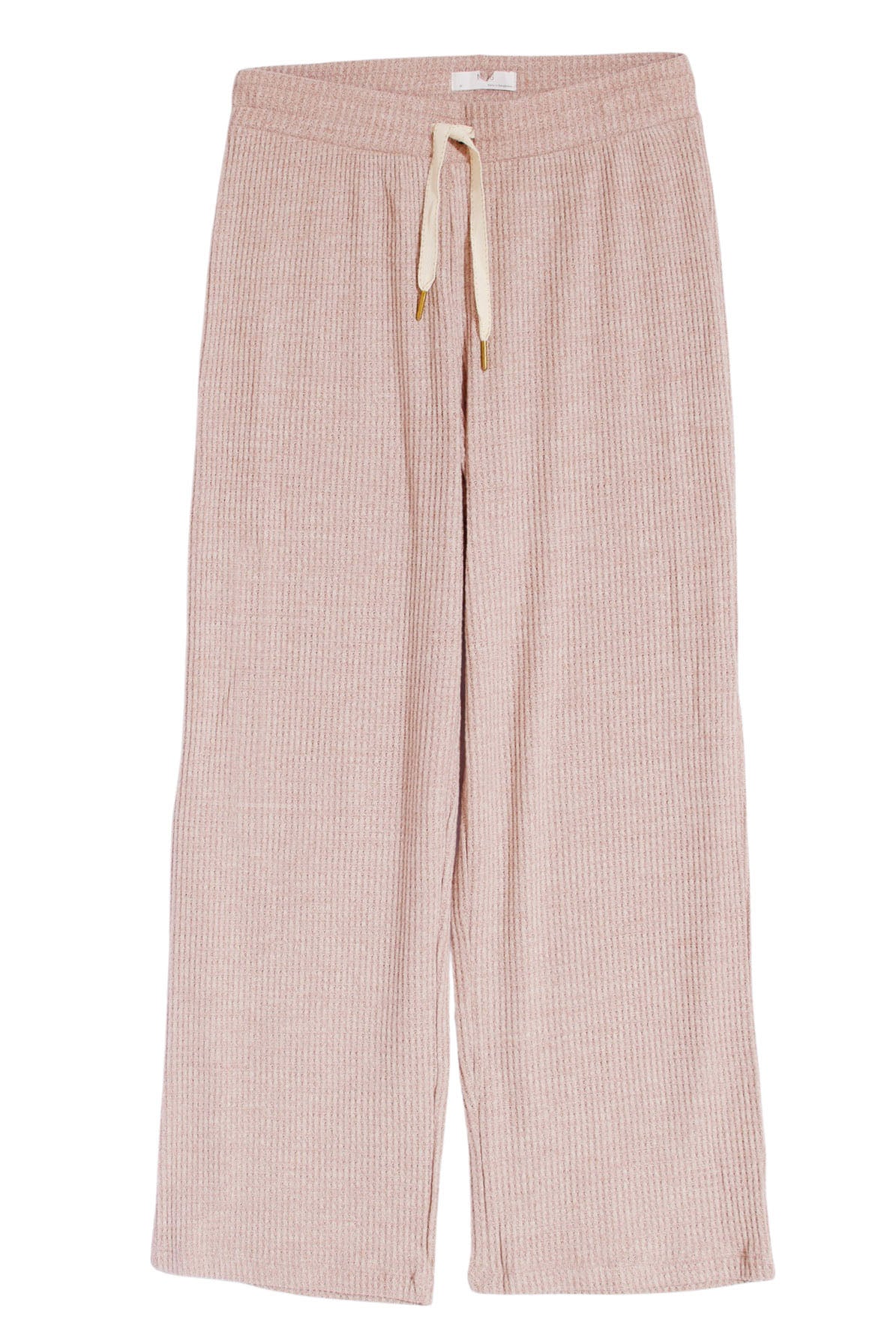 These lounge joggers have a cosy waffle texture that'll bring warmth and comfort to your downtime. Easy regular fit, featuring an elasticated drawstring waist and wide leg. The soft dusky pink colour is a subtle warm colour to mix and match with just about any colour