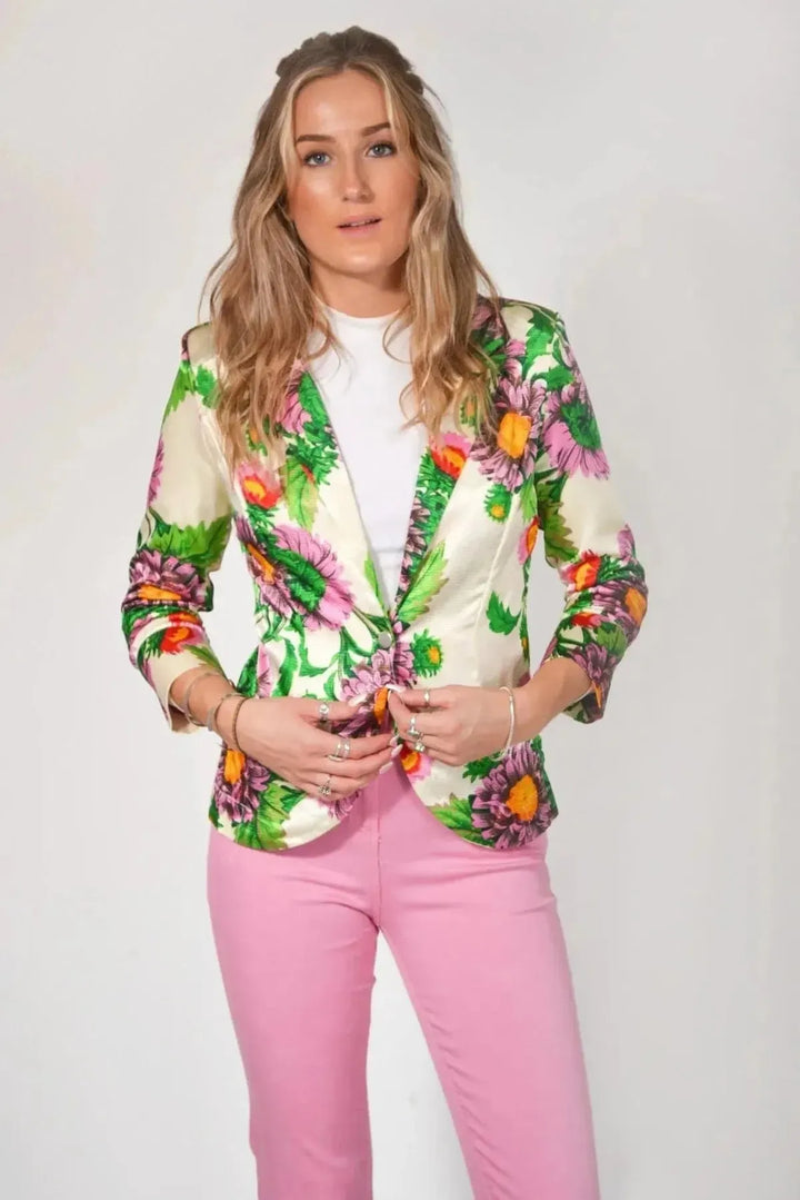 The perfect lightweight jacket to add a splash of vibrance to your outfit instantly. Cut in a fitted shape, with single brass button with revere collar, and mock pockets. This one is a a real style statement!